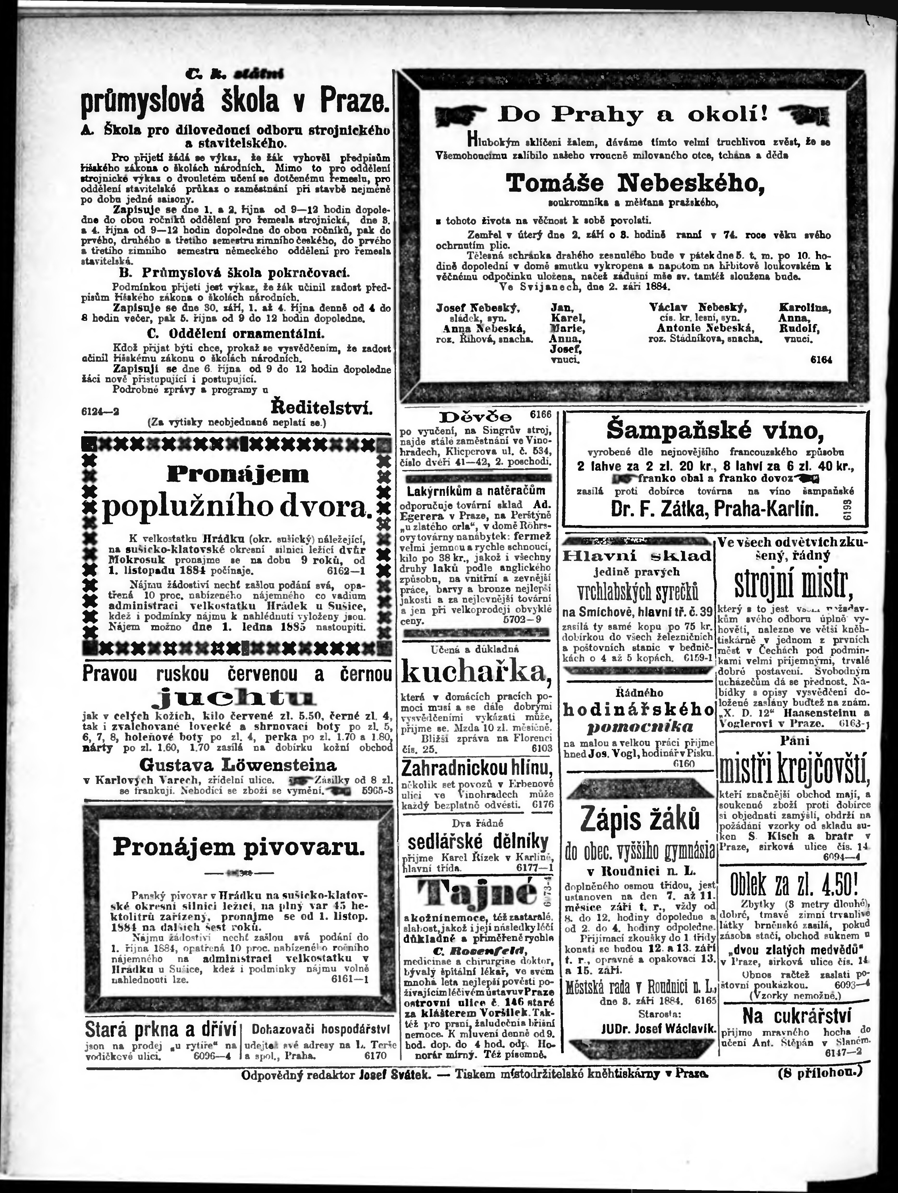 * Datum vydání výtisku: 5.9.1884 Číslo výtisku: 205