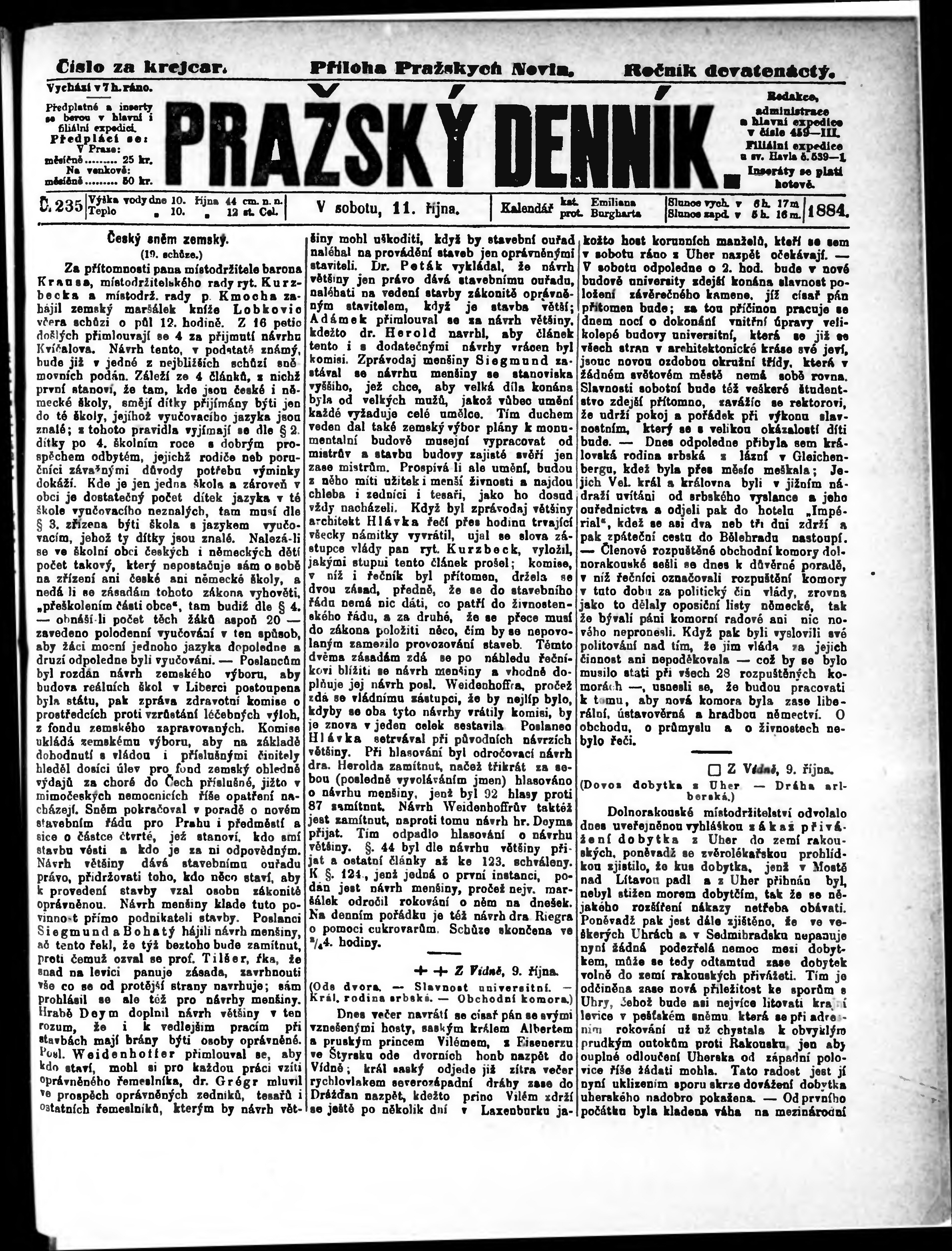 * Datum vydání výtisku: 11.10.1884 Číslo výtisku: 235