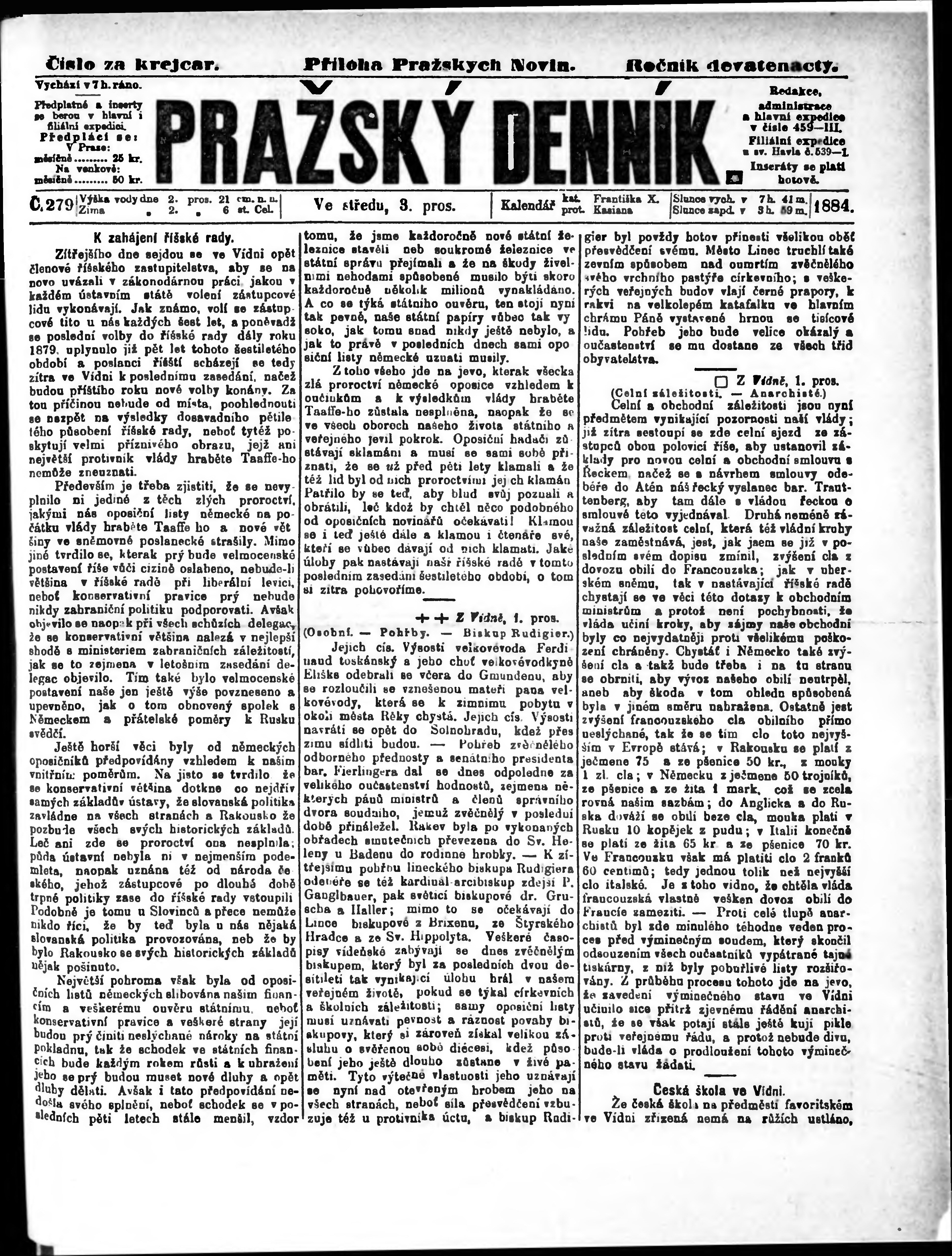 * Datum vydání výtisku: 3.12.1884 Číslo výtisku: 279