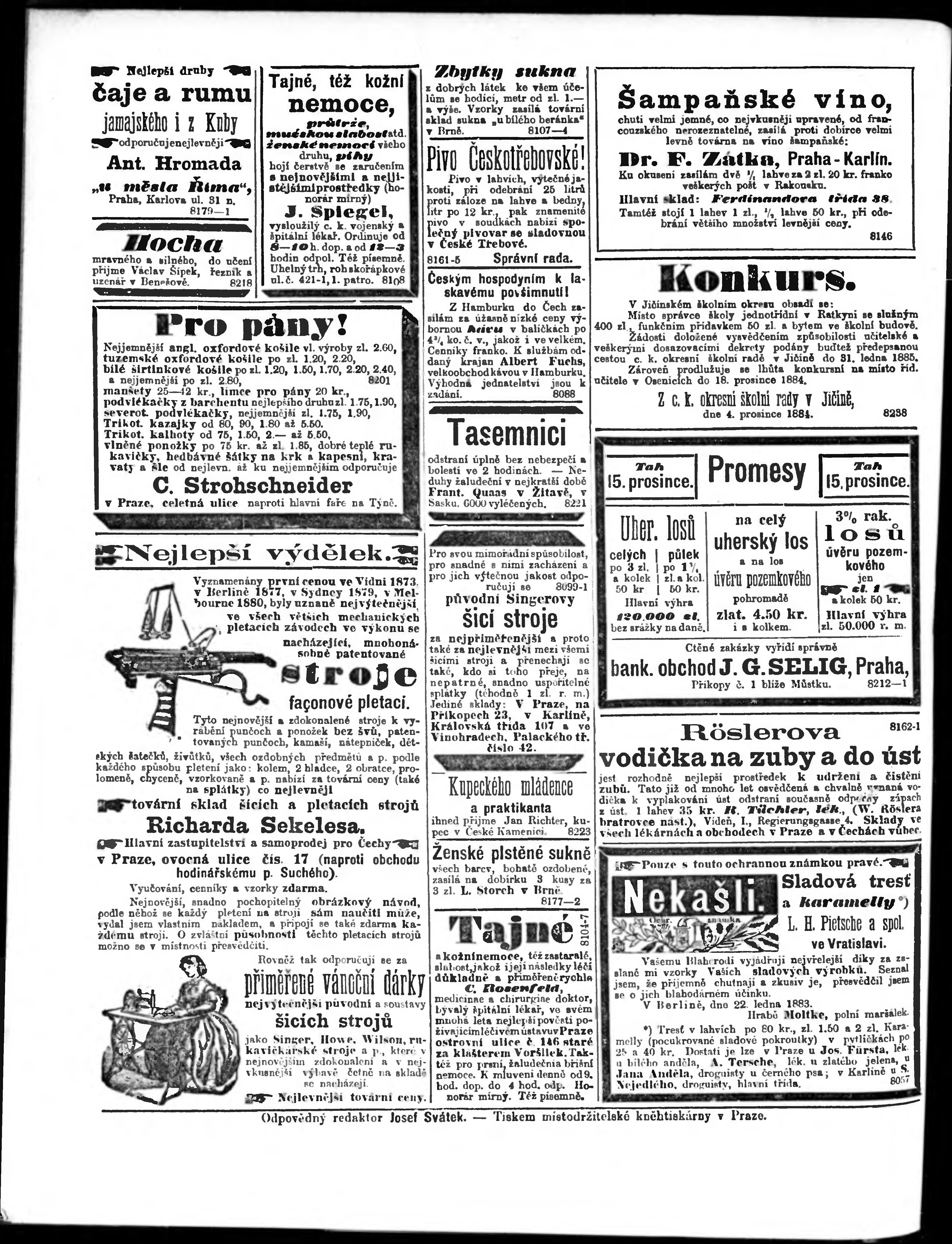 * Datum vydání výtisku: 10.12.1884 Číslo výtisku: 284