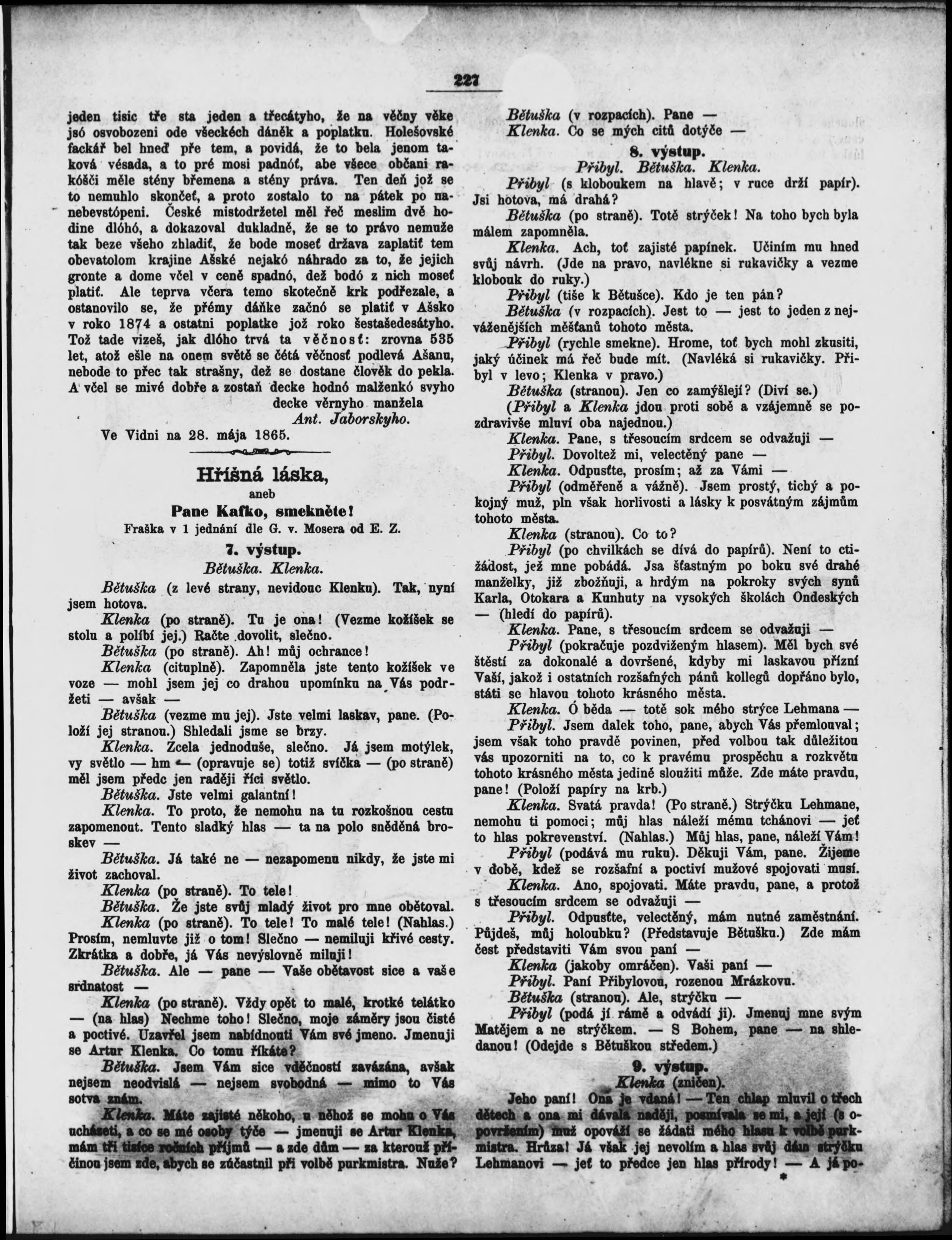 * Datum vydání výtisku: 17.6.1865 Číslo výtisku: 29 Poznámky k výtisku: s. 232 nekvalitní předloha;