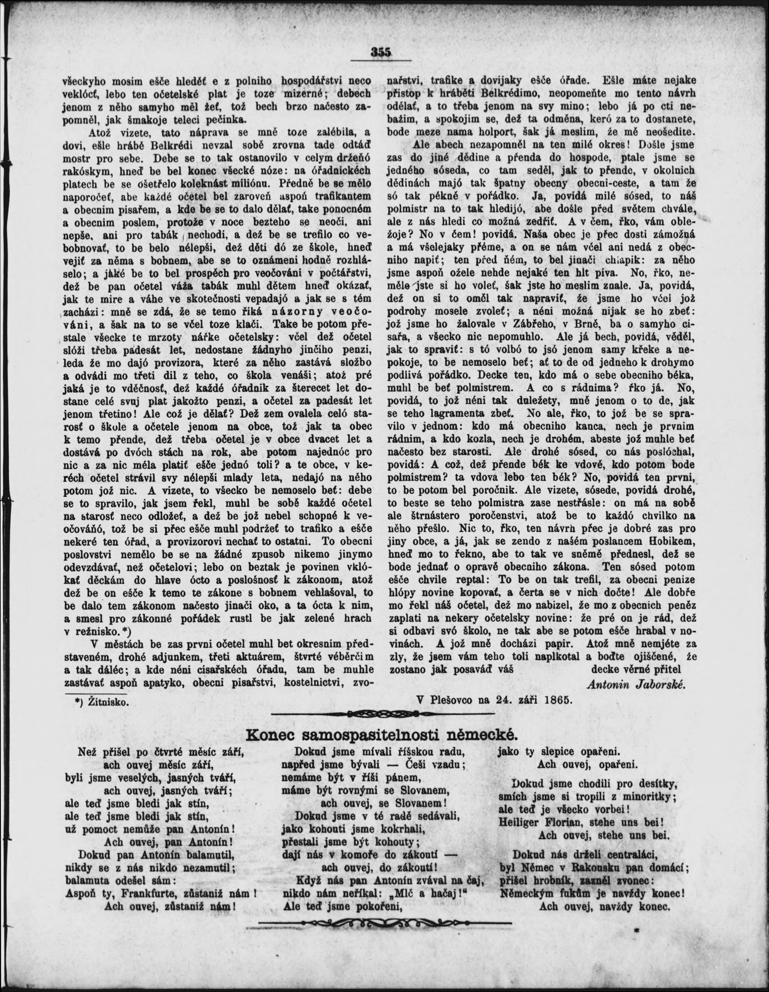 * Datum vydání výtisku: 7.10.1865 Číslo výtisku: 45