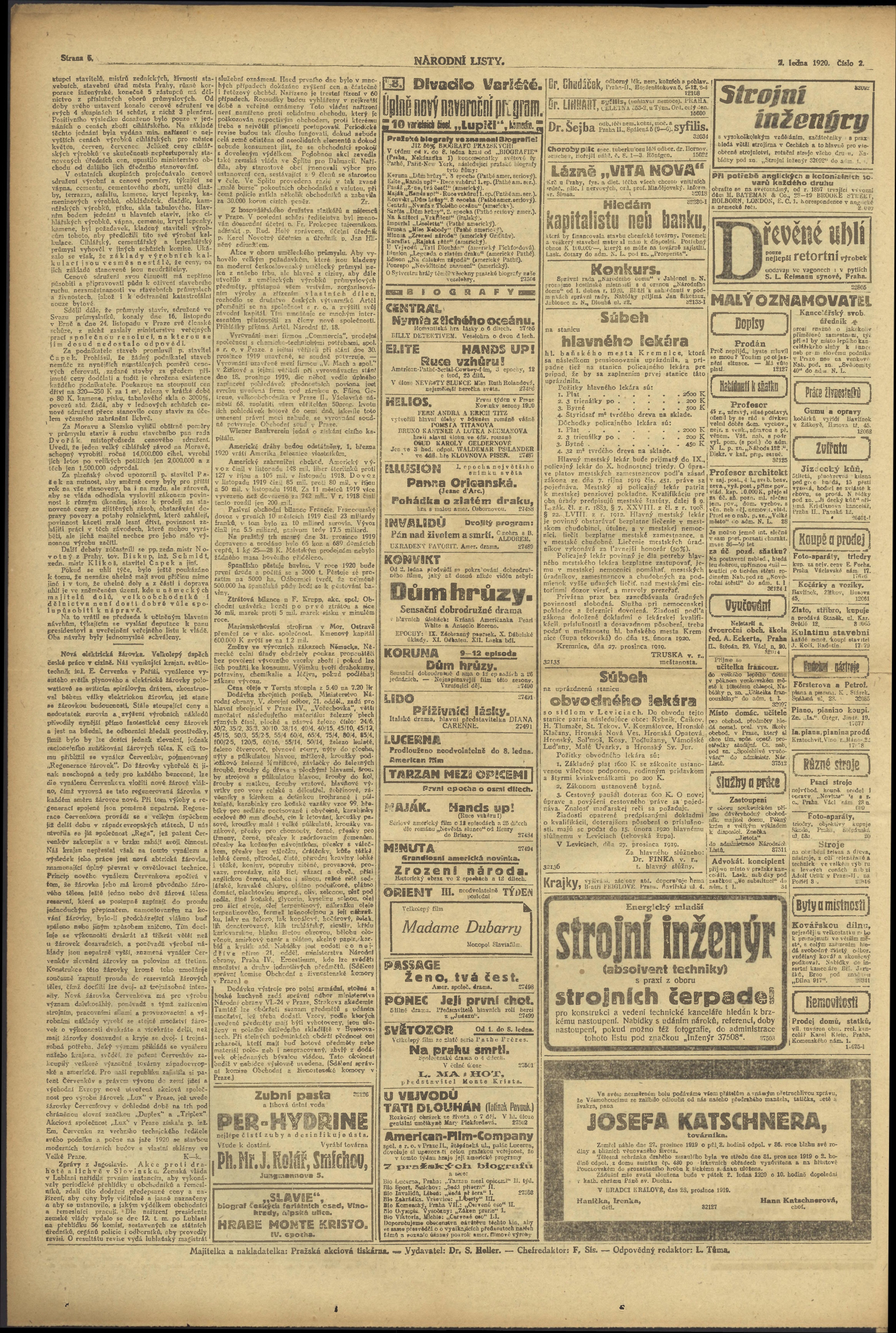 * Datum vydání výtisku: 2.1.1920 Číslo výtisku: 2 Poznámky k výtisku: ranní vydání;