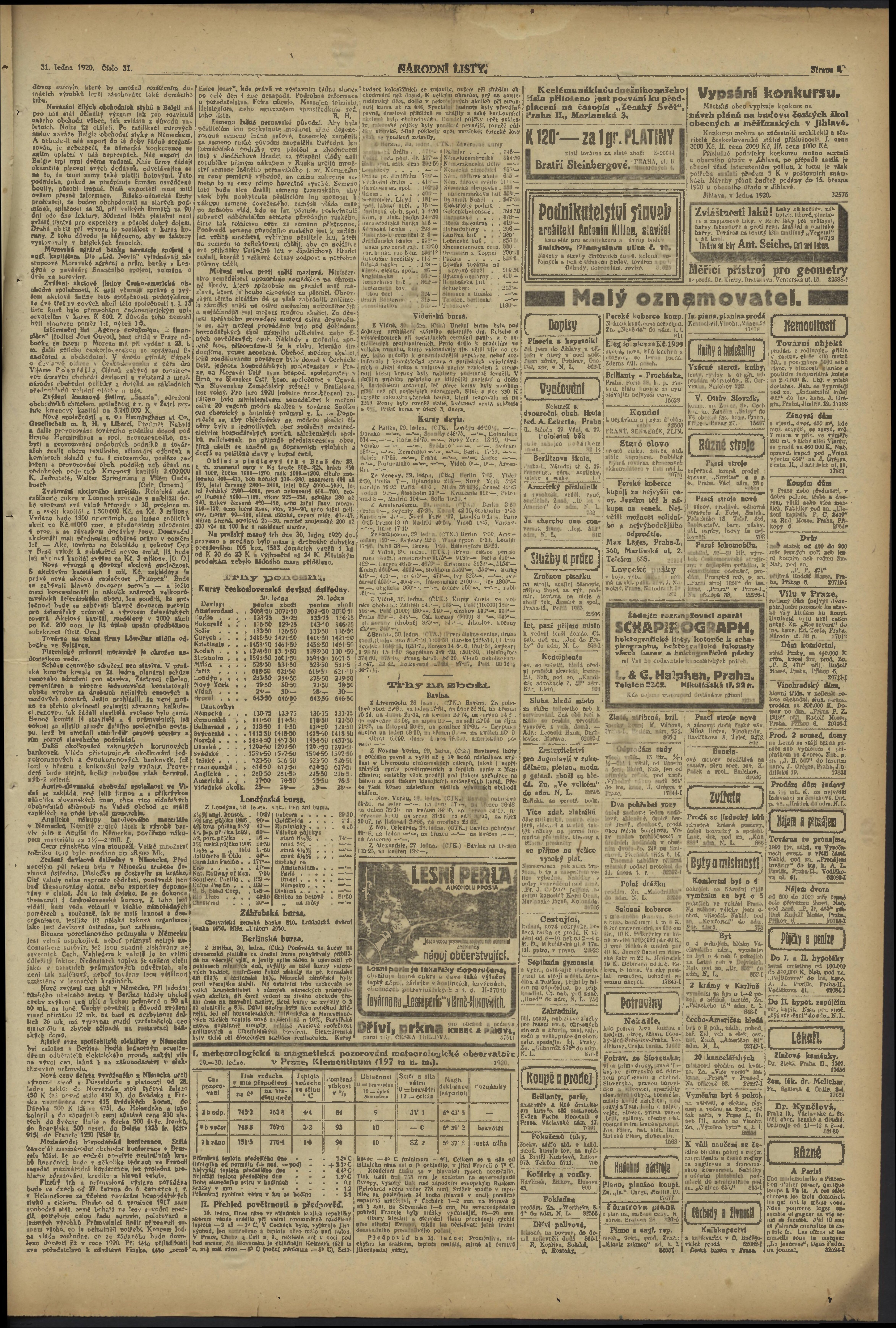 * Datum vydání výtisku: 31.1.1920 Číslo výtisku: 31 Poznámky k výtisku: ranní vydání;