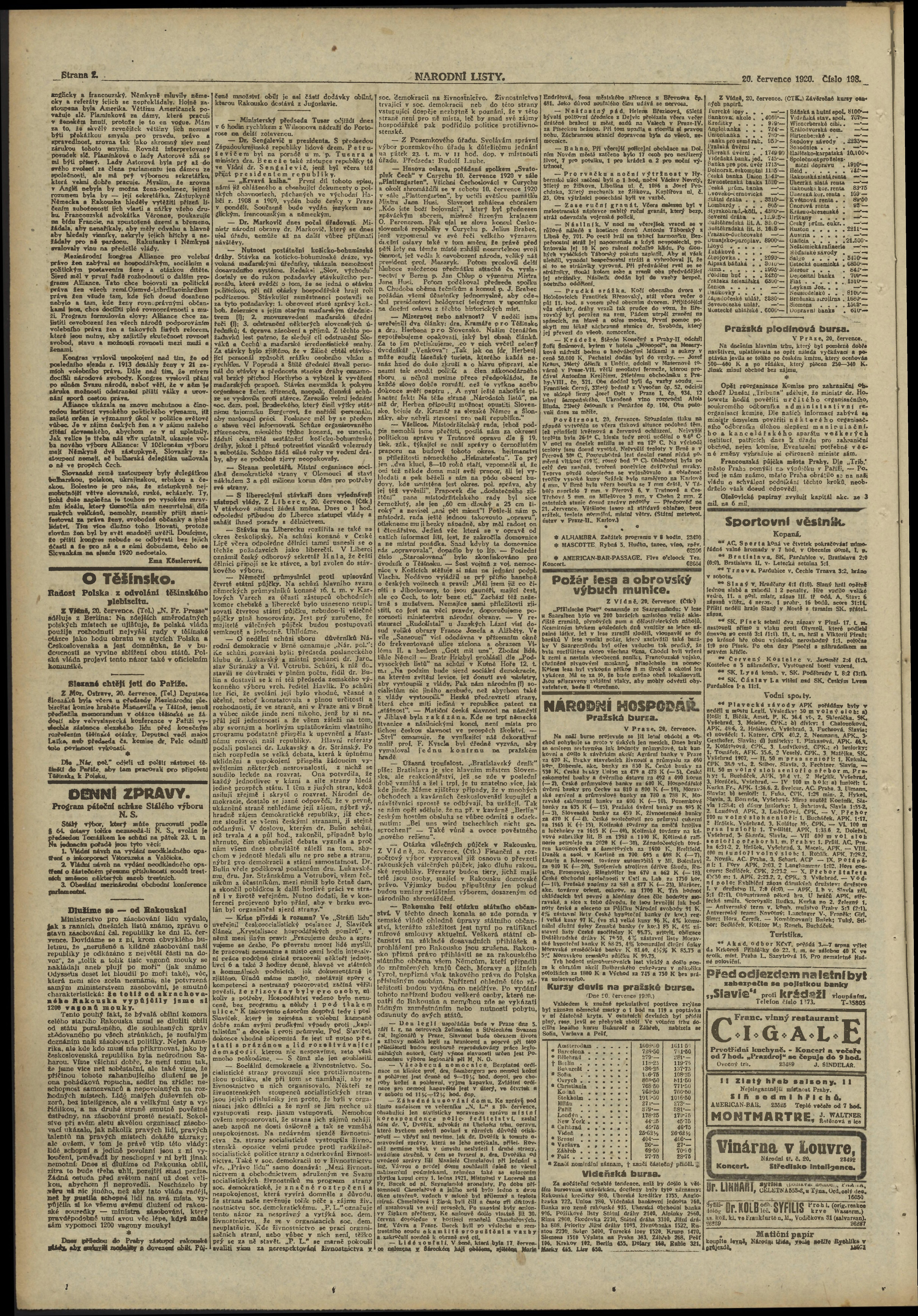 * Datum vydání výtisku: 20.7.1920 Číslo výtisku: 198 Poznámky k výtisku: večerní vydání;