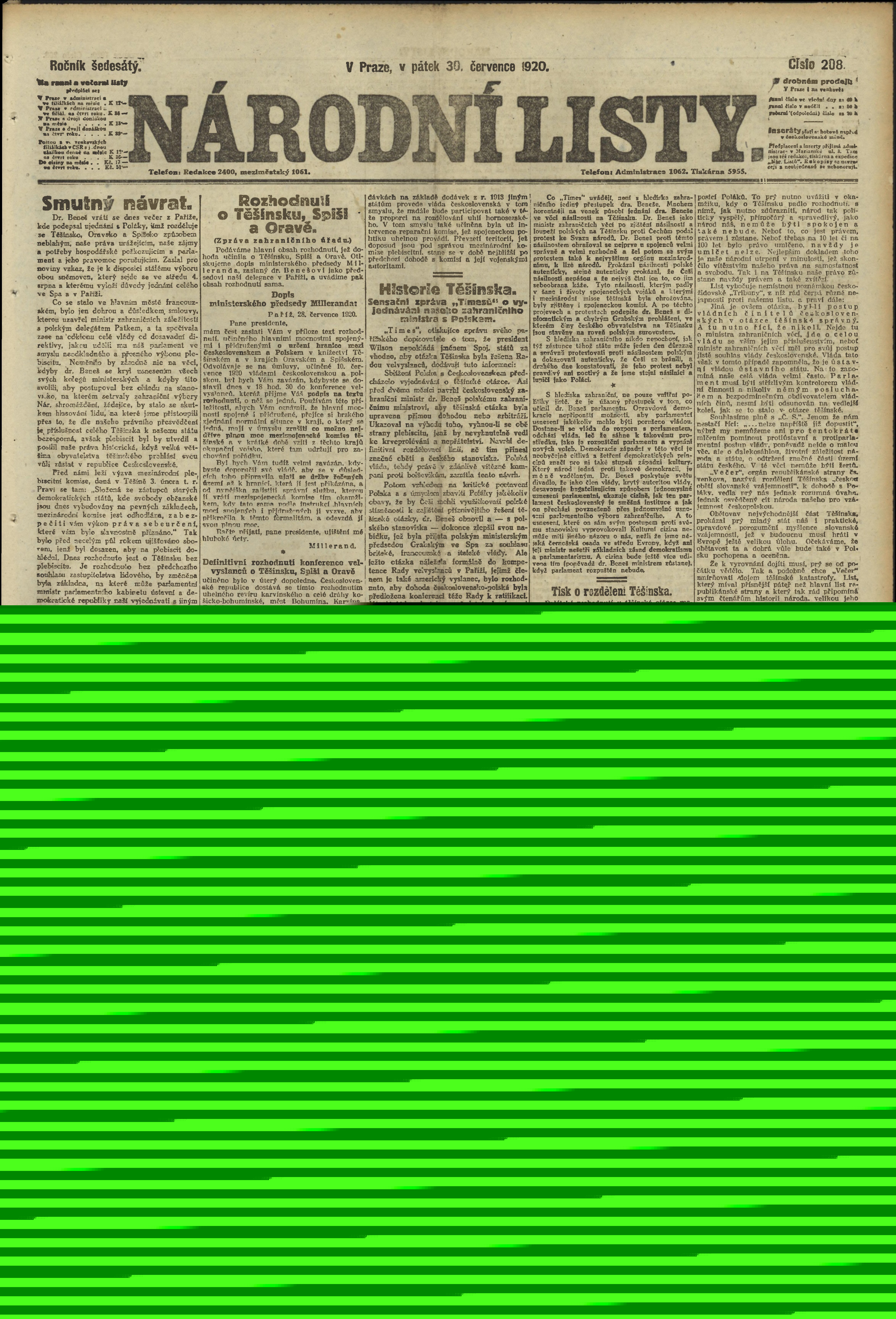 * Datum vydání výtisku: 30.7.1920 Číslo výtisku: 208 Poznámky k výtisku: ranní vydání;