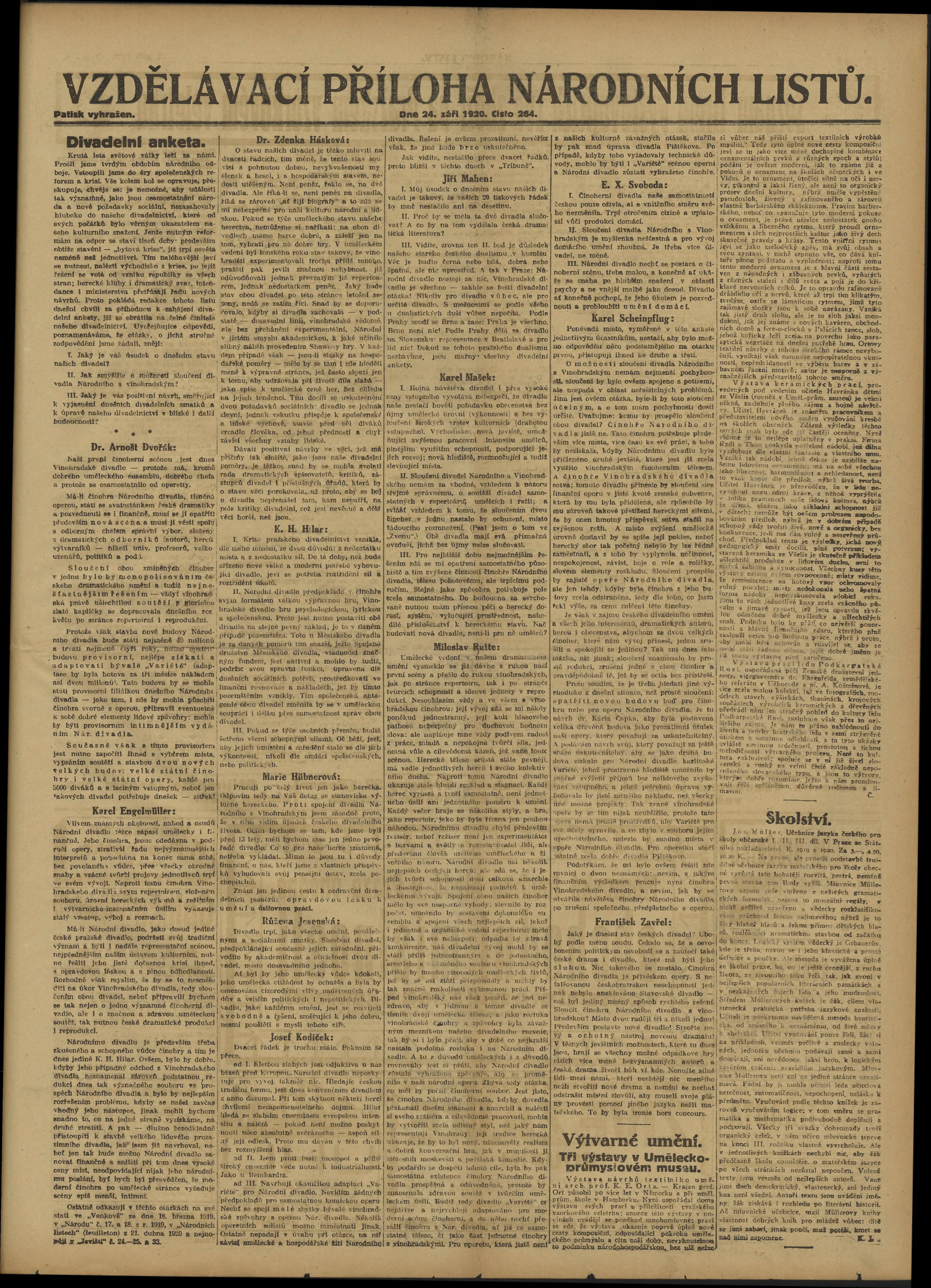 * Datum vydání výtisku: 24.9.1920 Číslo výtisku: 264 Typ výtisku: příloha
