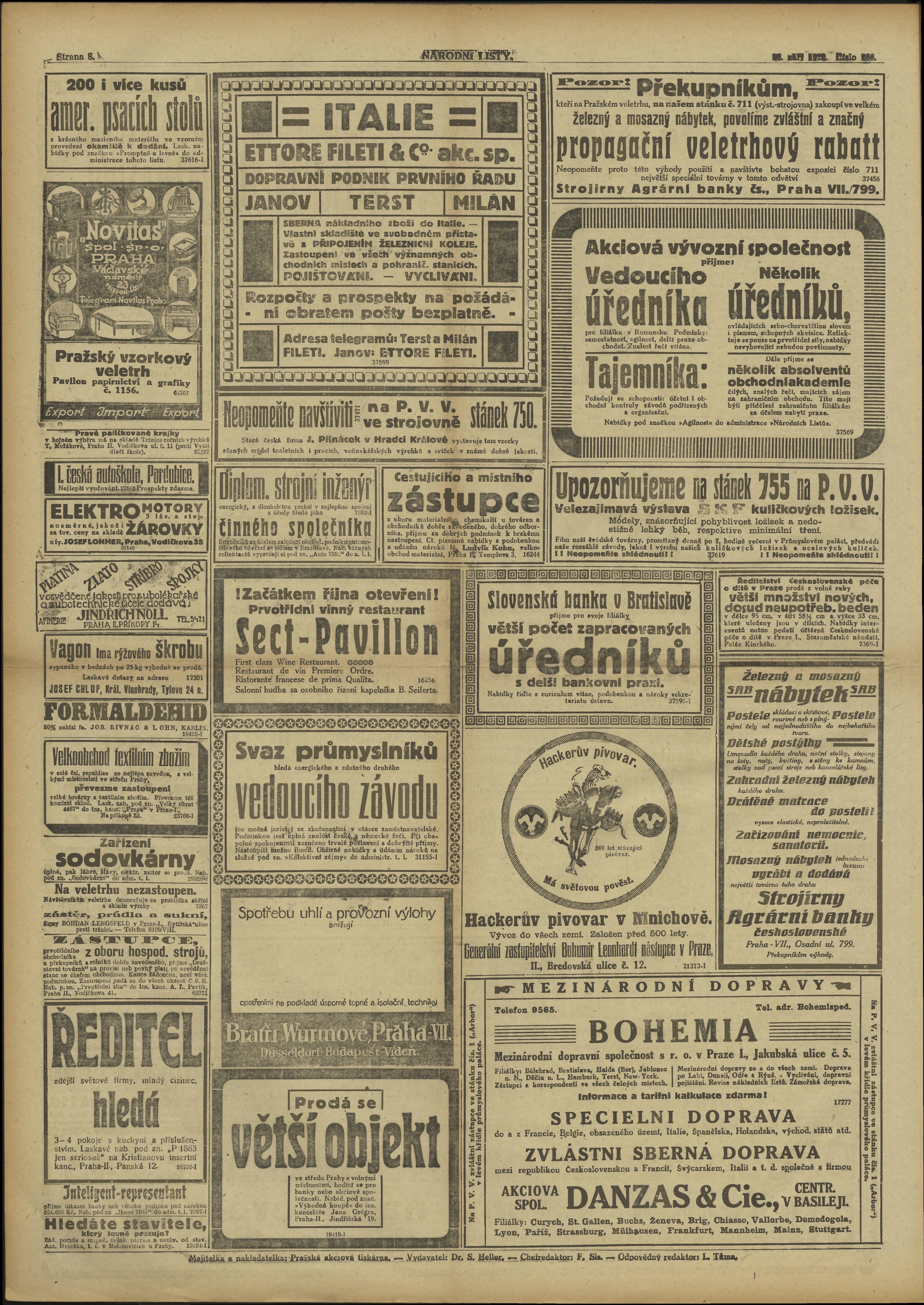 * Datum vydání výtisku: 26.9.1920 Číslo výtisku: 266 Poznámky k výtisku: ranní vydání;