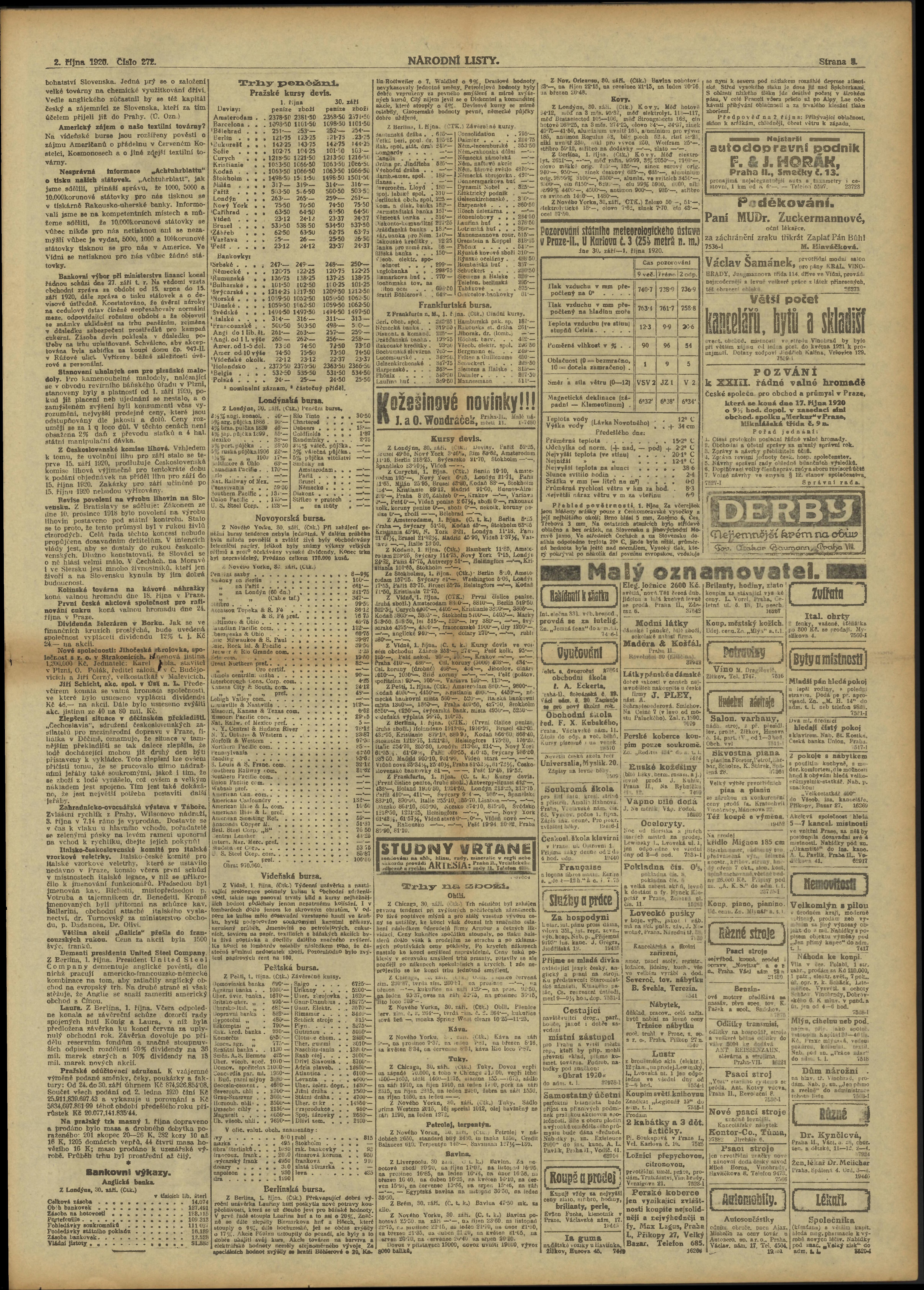 * Datum vydání výtisku: 2.10.1920 Číslo výtisku: 272 Poznámky k výtisku: ranní vydání;