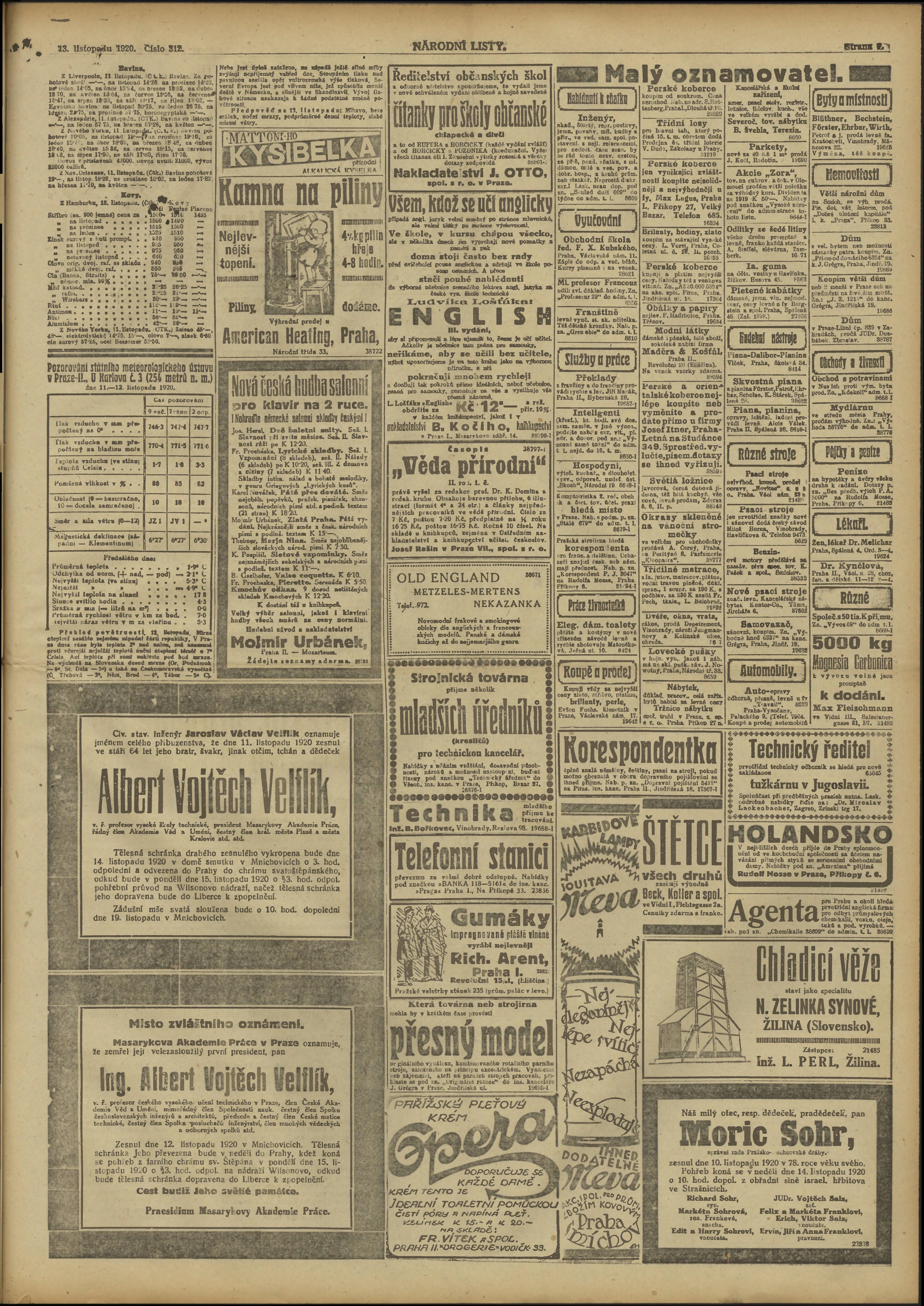 * Datum vydání výtisku: 13.11.1920 Číslo výtisku: 312 Poznámky k výtisku: ranní vydání;