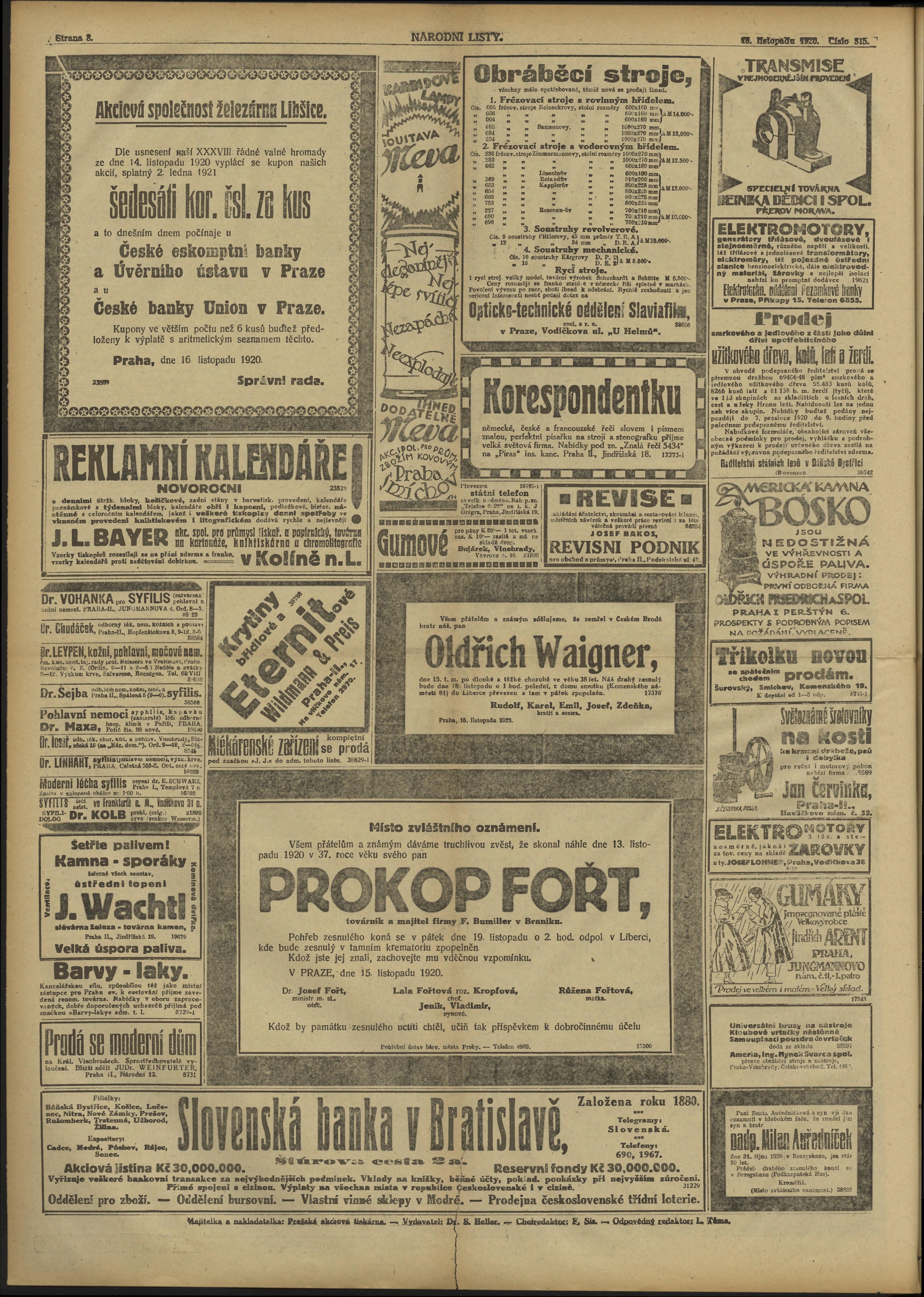 Poznámky k výtisku: