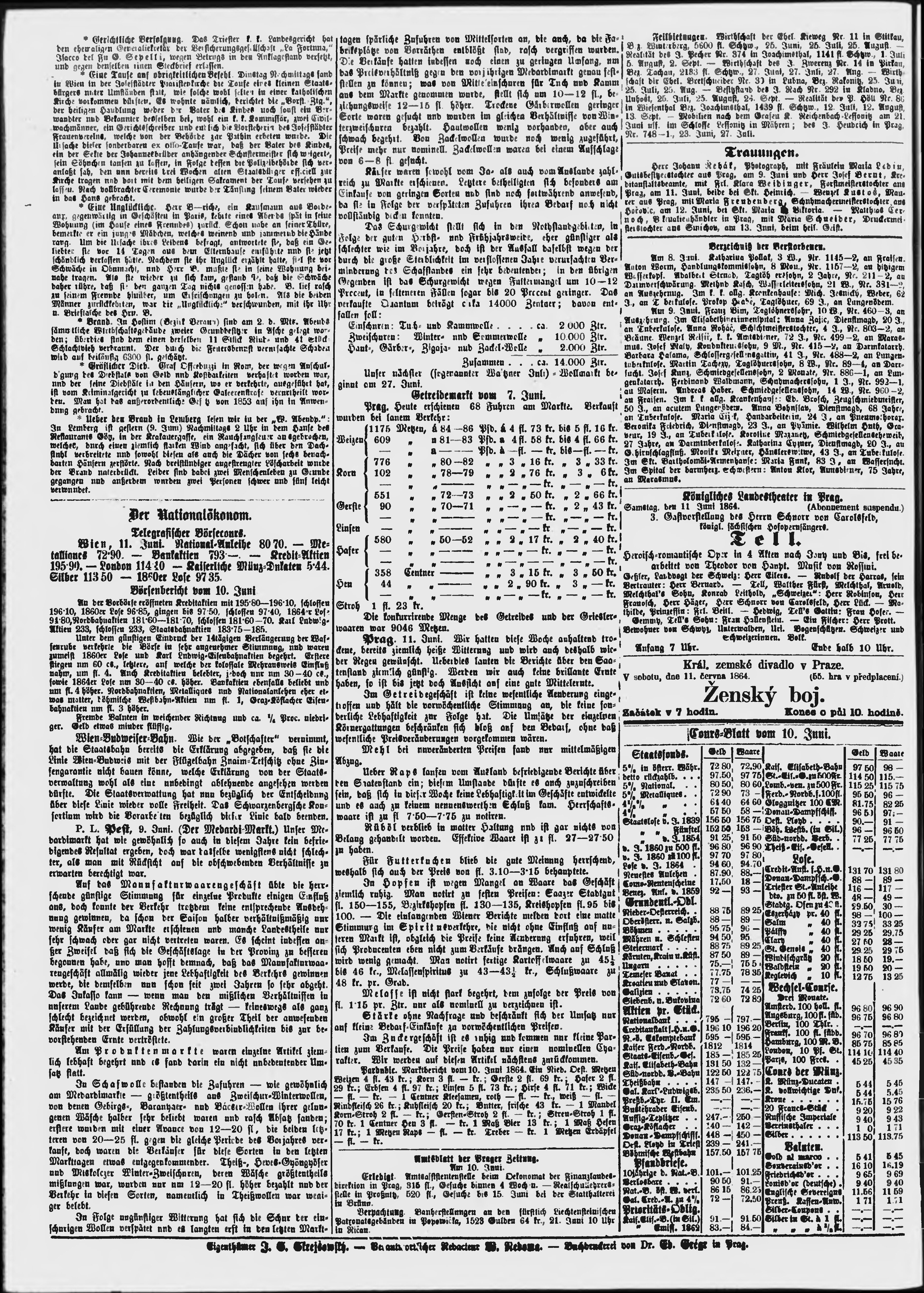 * Datum vydání výtisku: 11.6.1864 Číslo výtisku: 159 Poznámky k výtisku: večerní vydání;