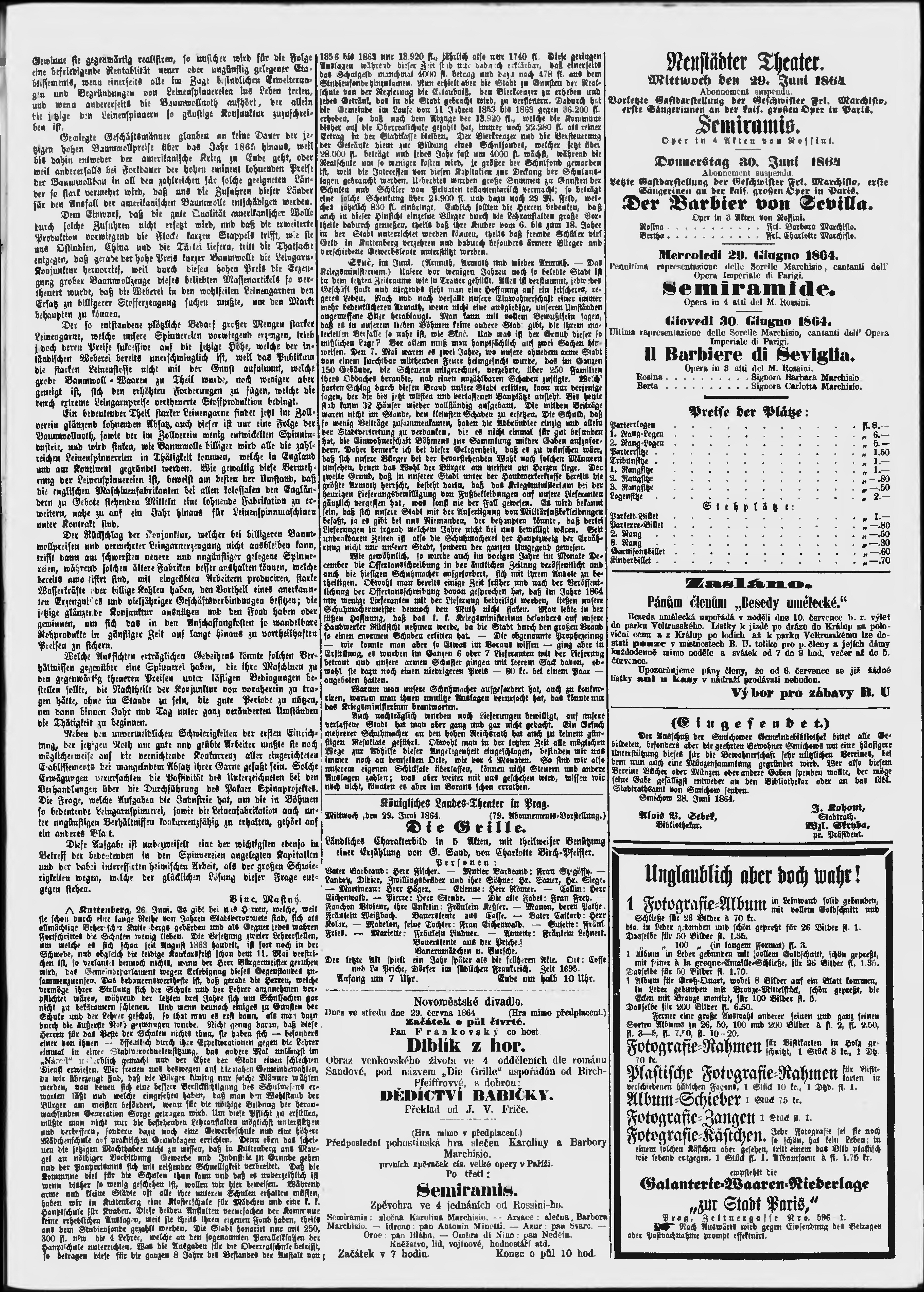 * Datum vydání výtisku: 29.6.1864 Číslo výtisku: 177