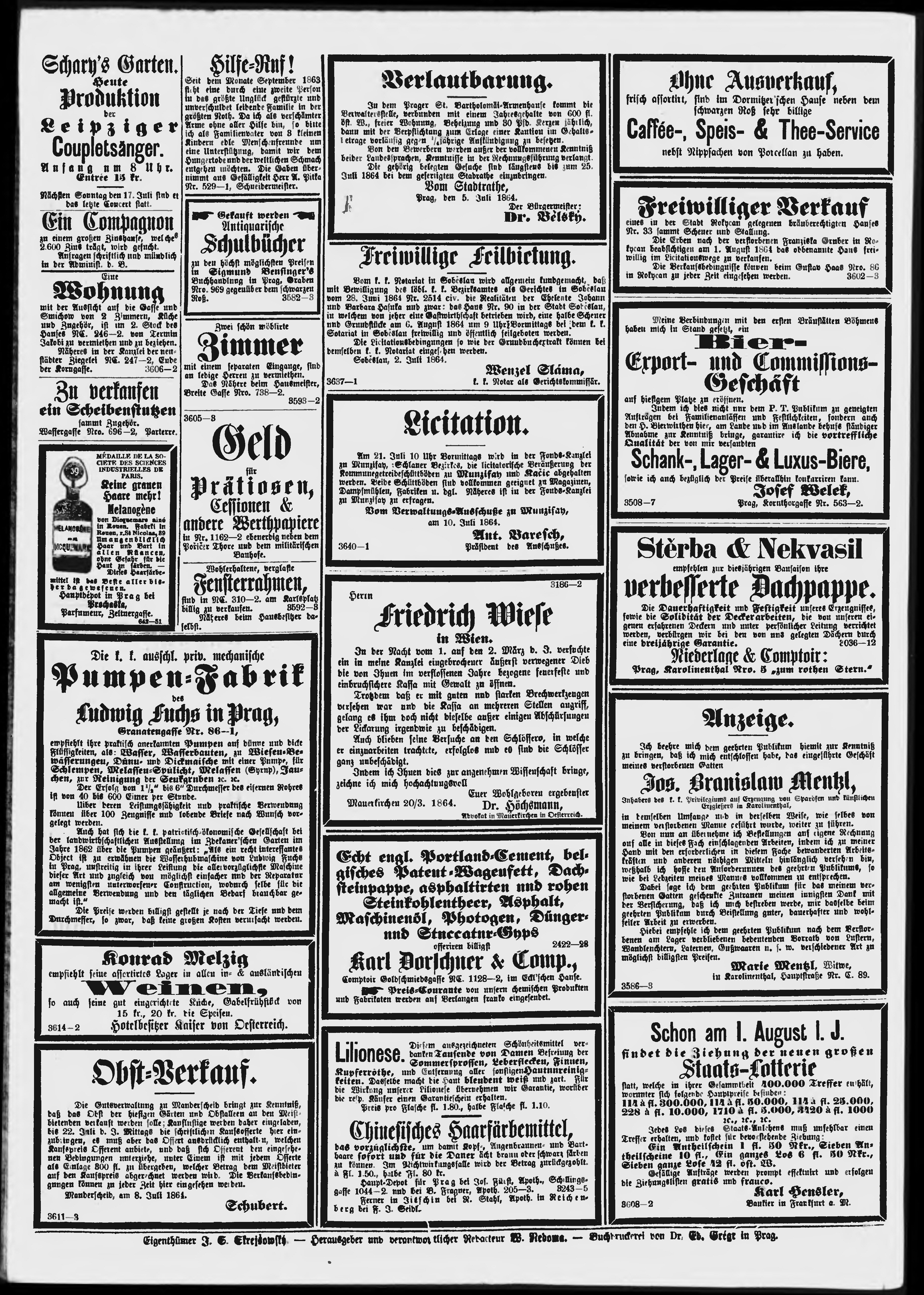 * Datum vydání výtisku: 13.7.1864 Číslo výtisku: 191