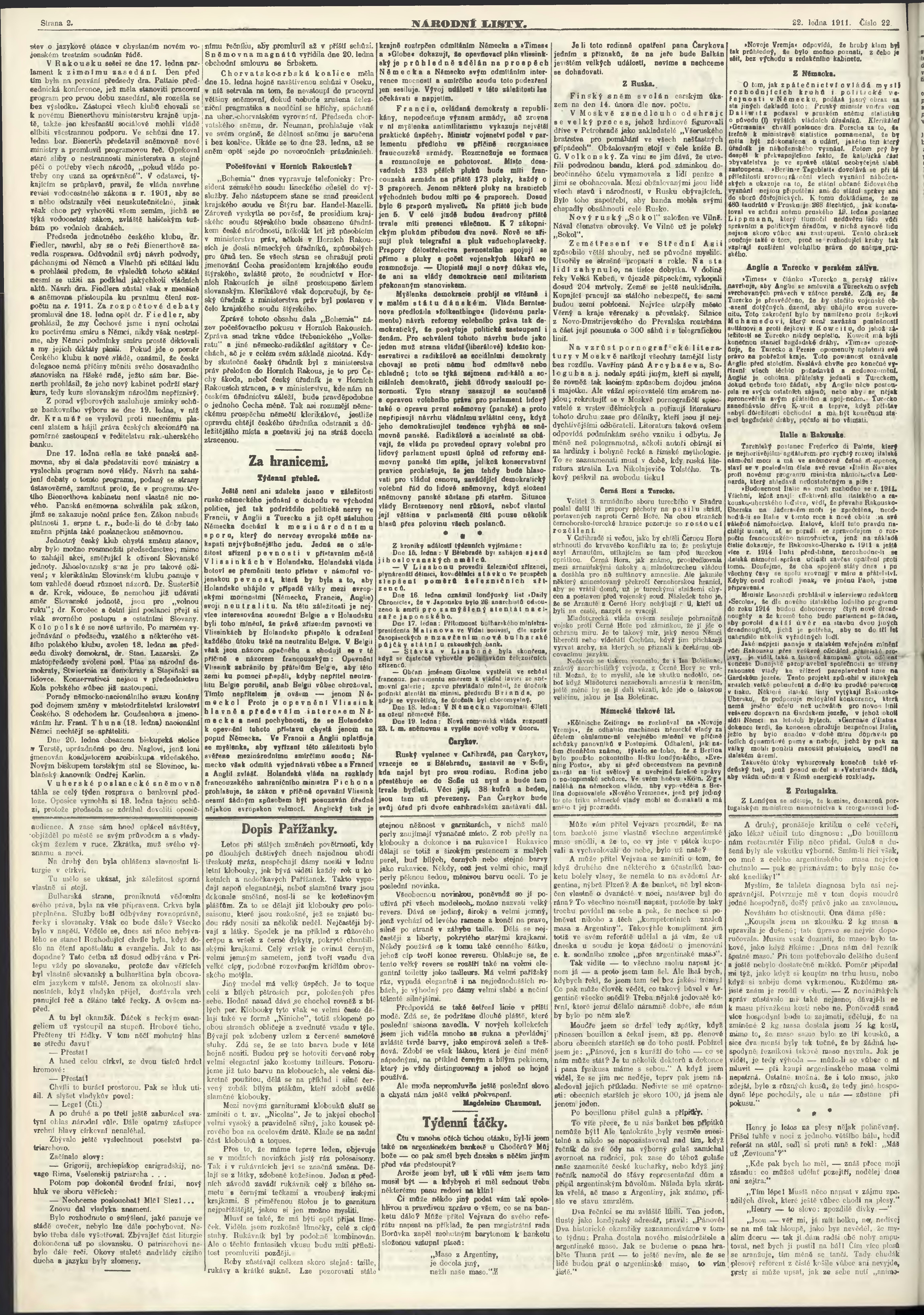 * Datum vydání výtisku: 22.1.1911 Číslo výtisku: 22 Poznámky k výtisku: ranní vydání;