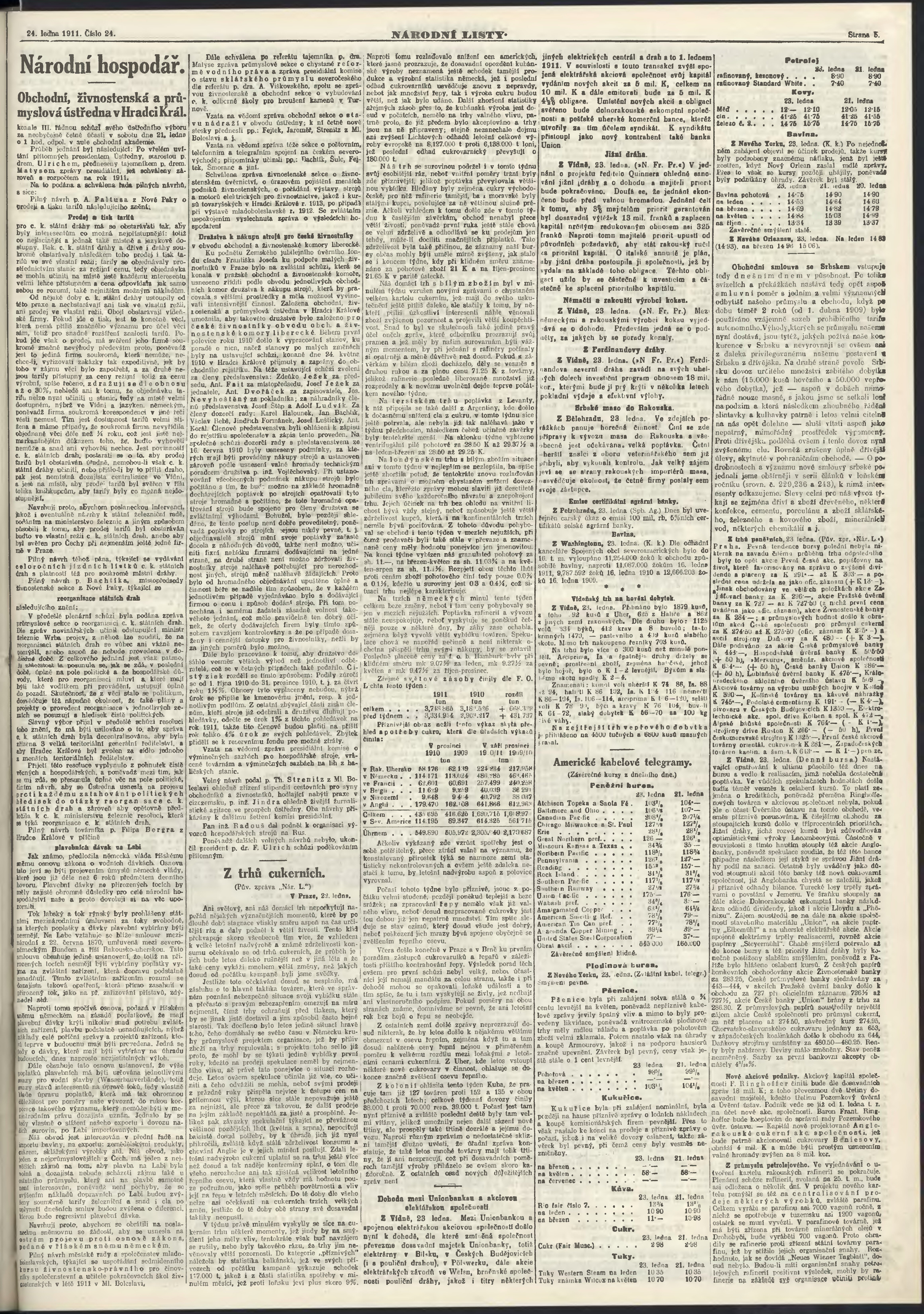 * Datum vydání výtisku: 24.1.1911 Číslo výtisku: 24 Poznámky k výtisku: ranní vydání;