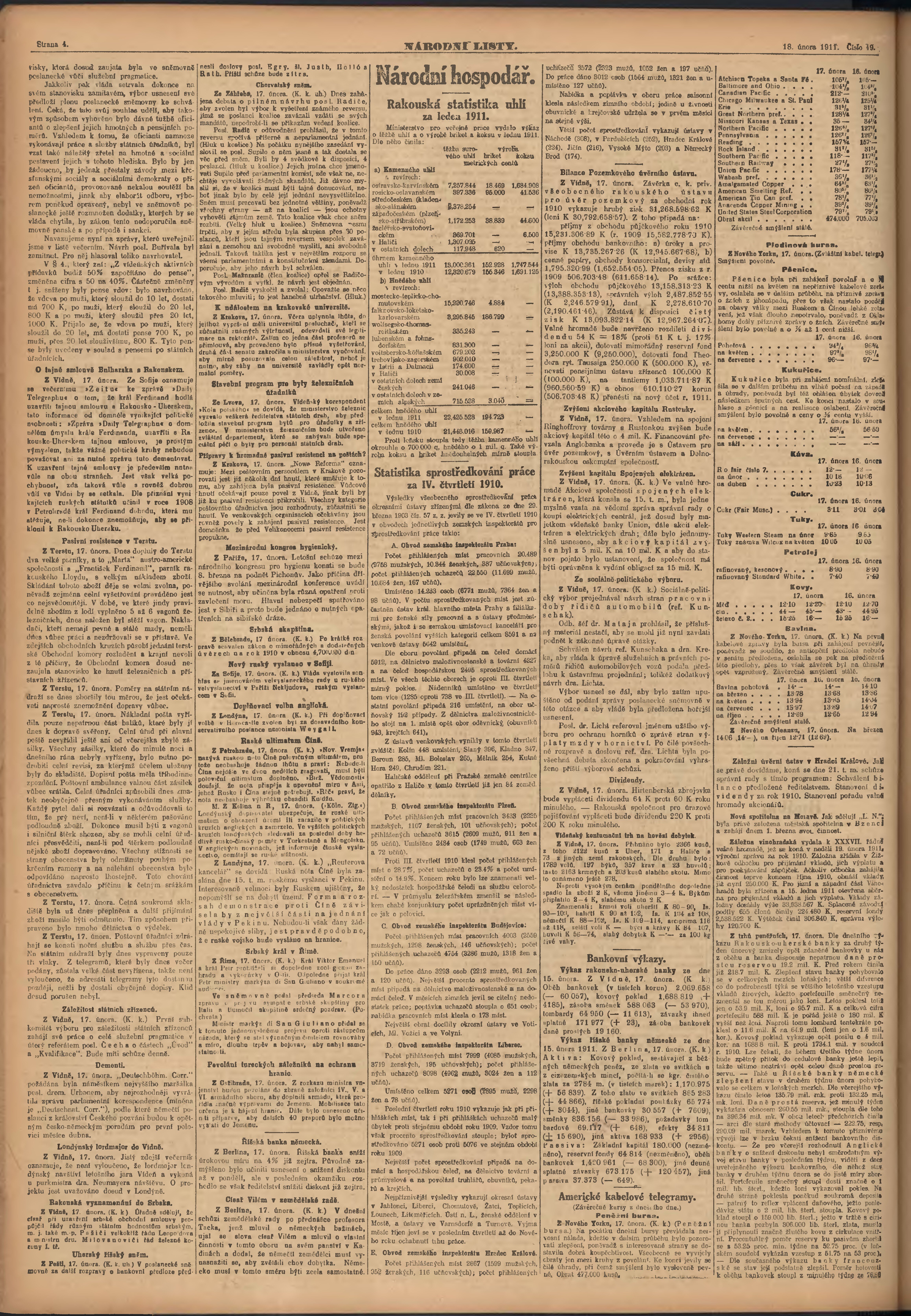 * Datum vydání výtisku: 18.2.1911 Číslo výtisku: 49 Poznámky k výtisku: ranní vydání;