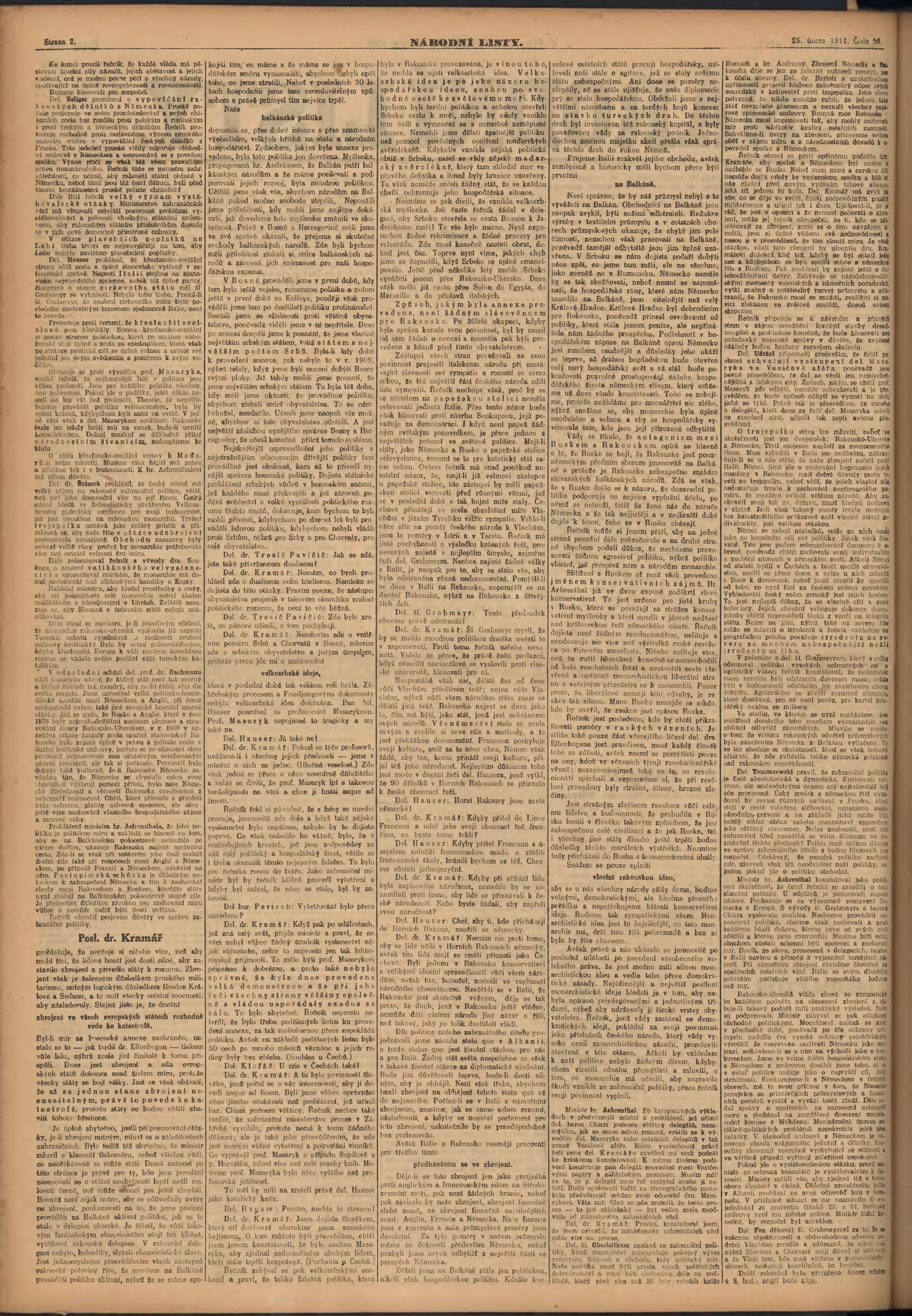 * Datum vydání výtisku: 25.2.1911 Číslo výtisku: 56 Poznámky k výtisku: ranní vydání;