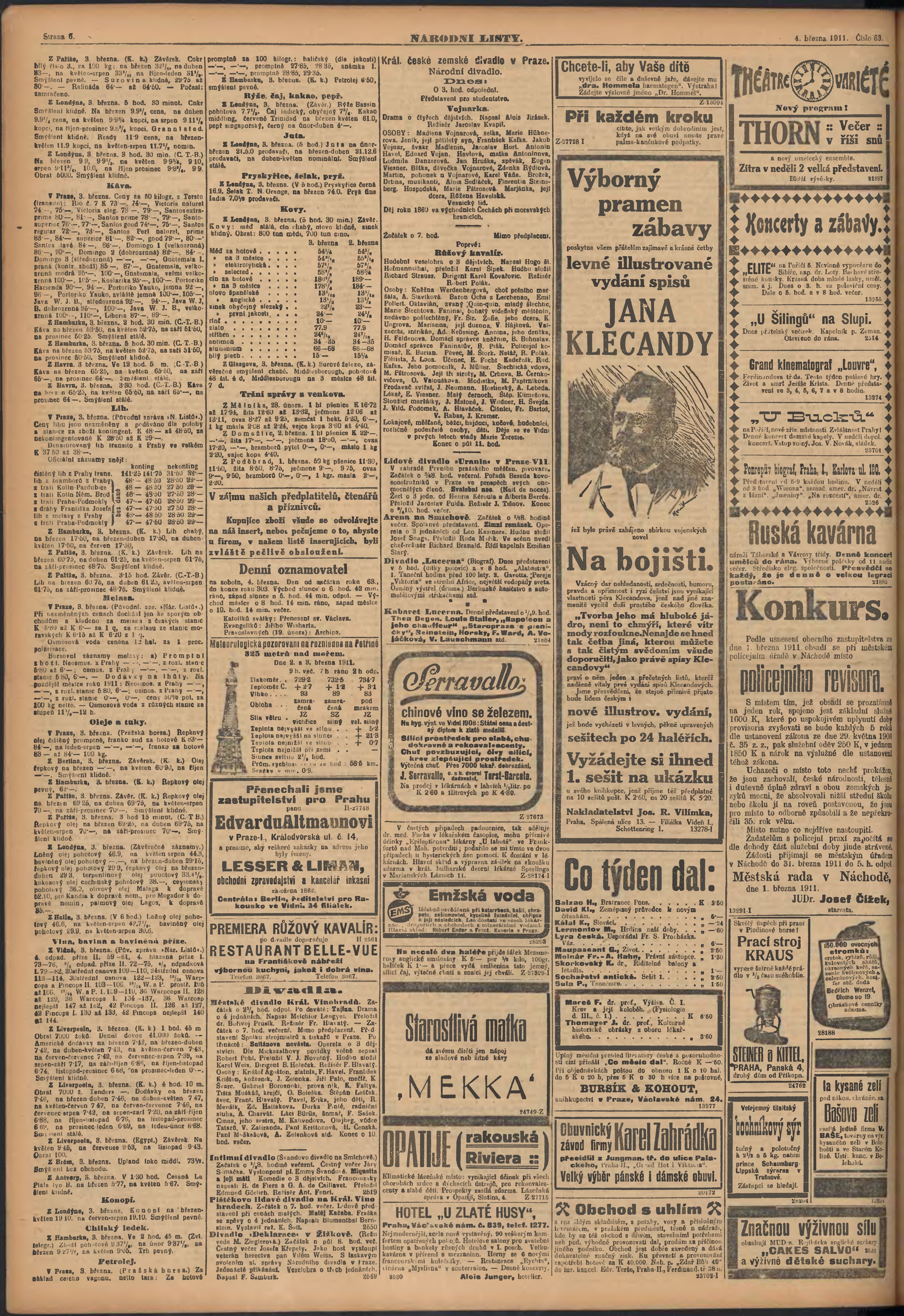 * Datum vydání výtisku: 4.3.1911 Číslo výtisku: 63 Poznámky k výtisku: ranní vydání;