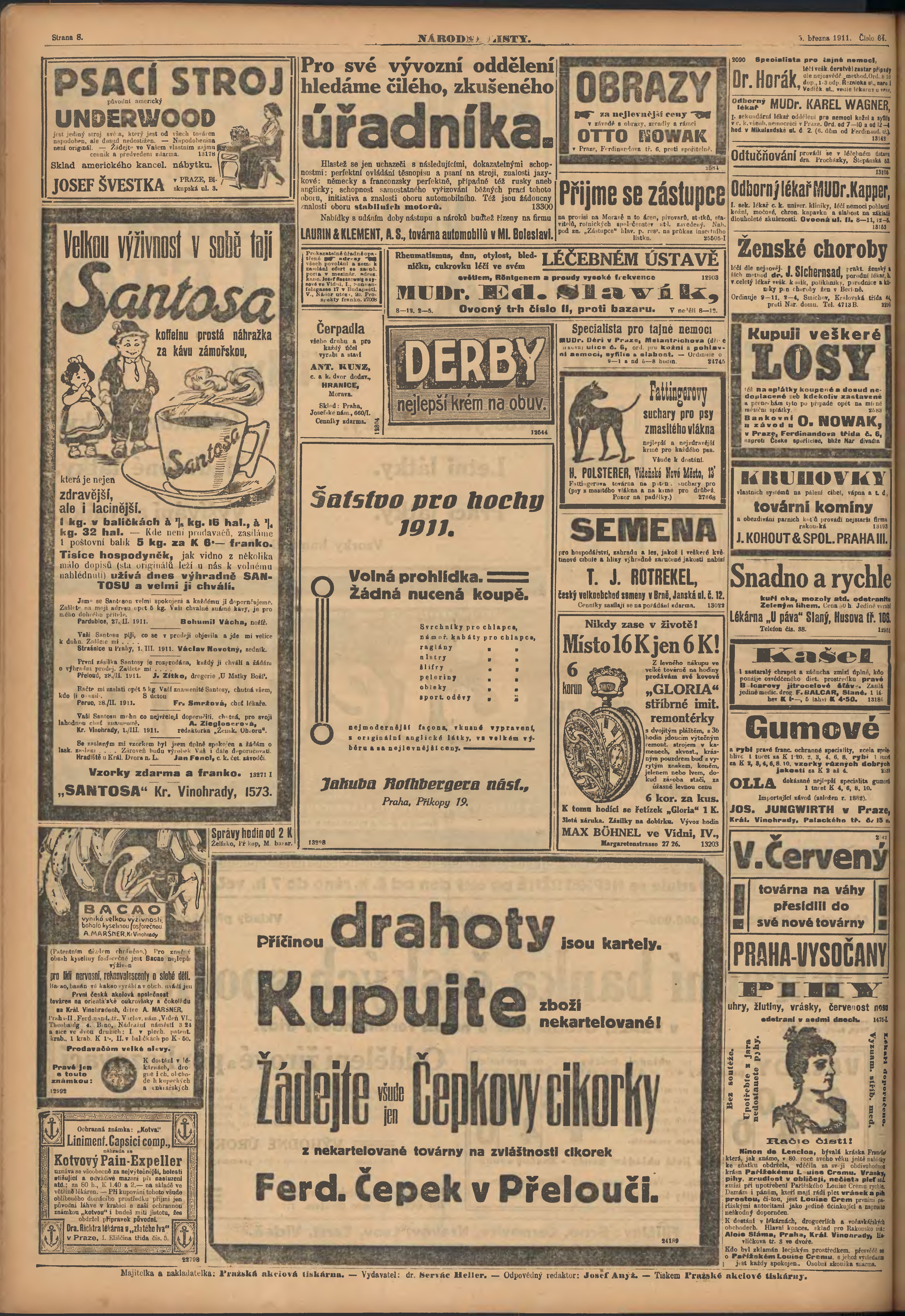 * Datum vydání výtisku: 5.3.1911 Číslo výtisku: 64 Poznámky k výtisku: ranní vydání;