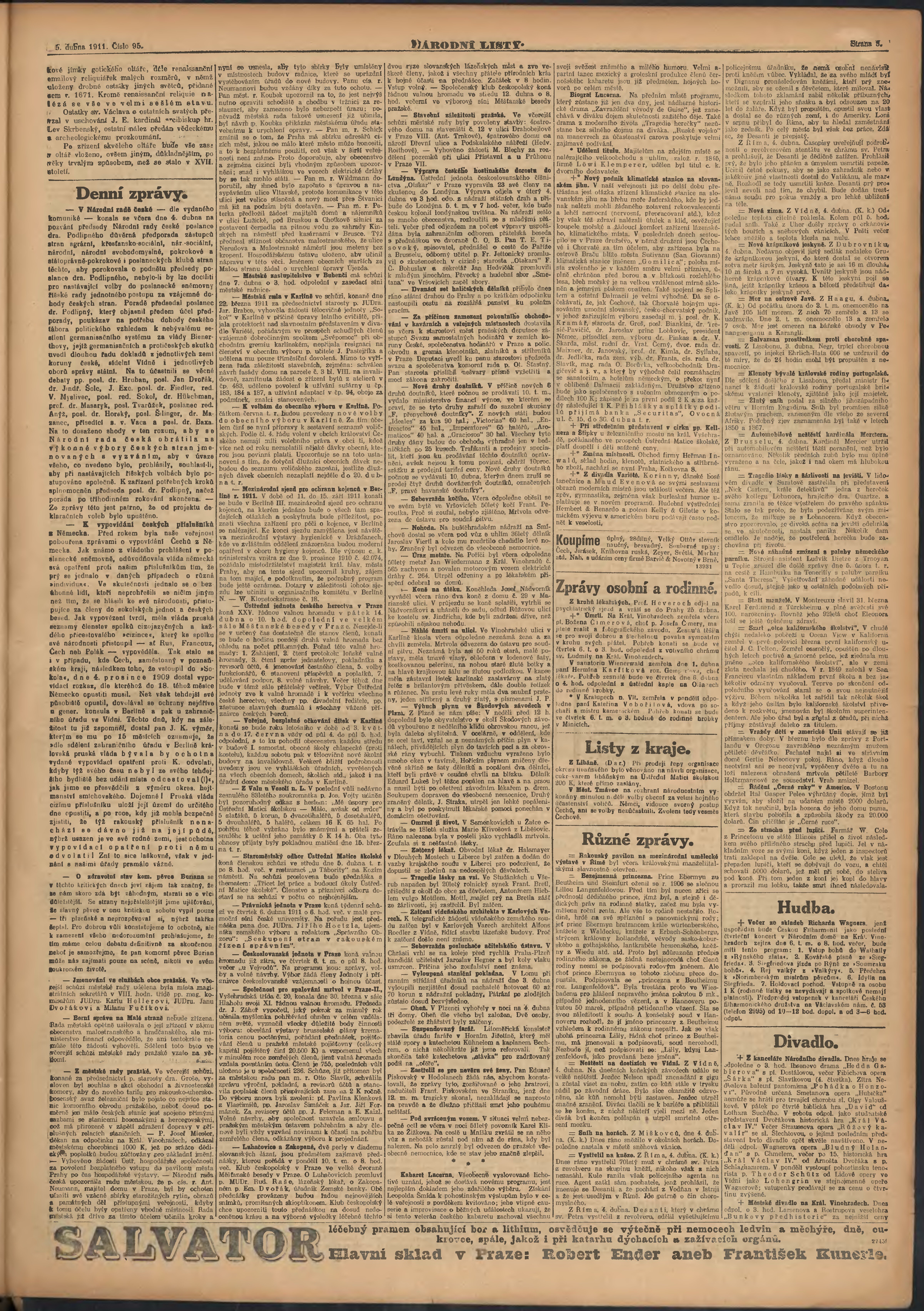 * Datum vydání výtisku: 5.4.1911 Číslo výtisku: 95 Poznámky k výtisku: ranní vydání;