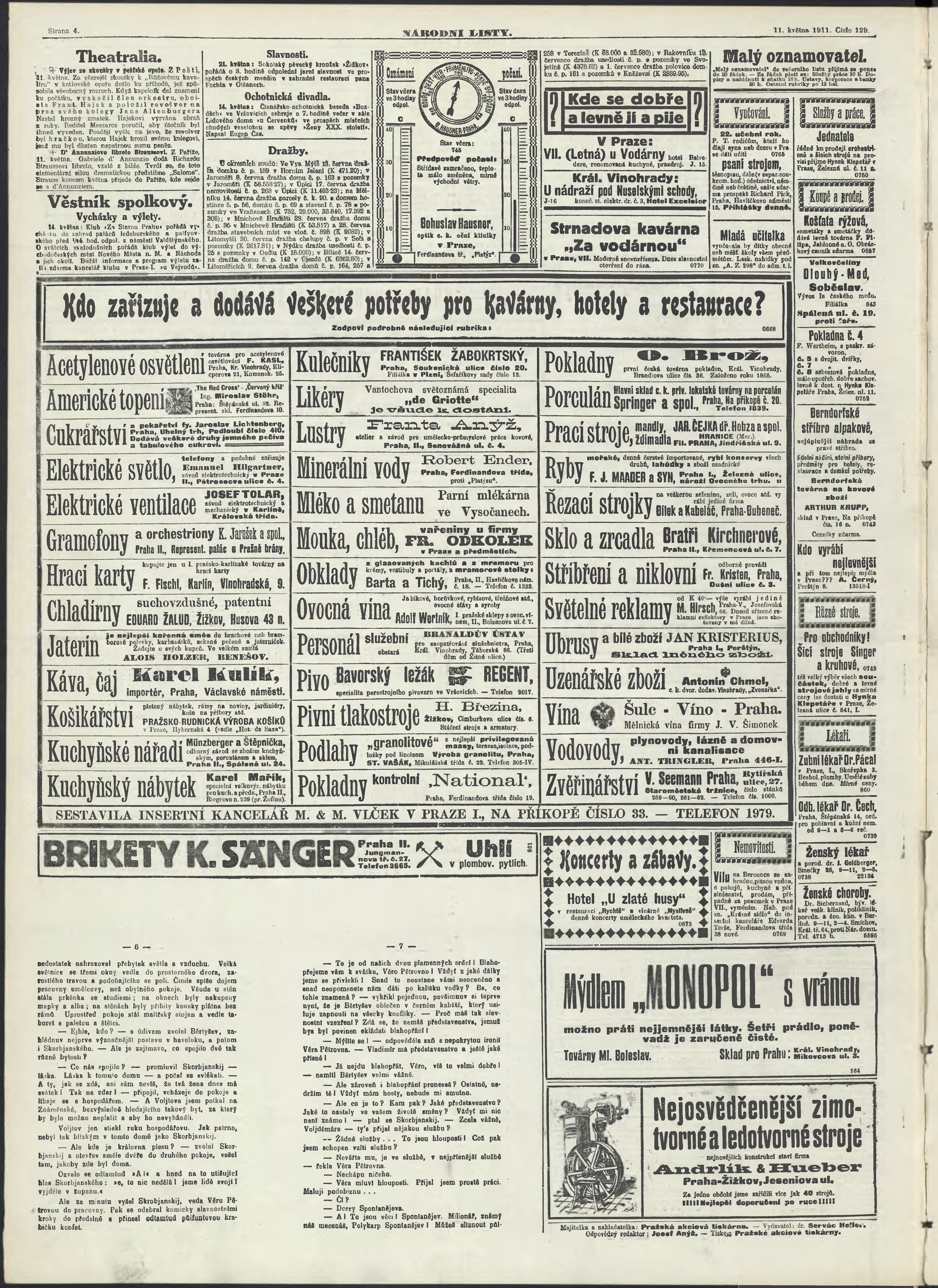 * Datum vydání výtisku: 11.5.1911 Číslo výtisku: 129 Poznámky k výtisku: večerní vydání;