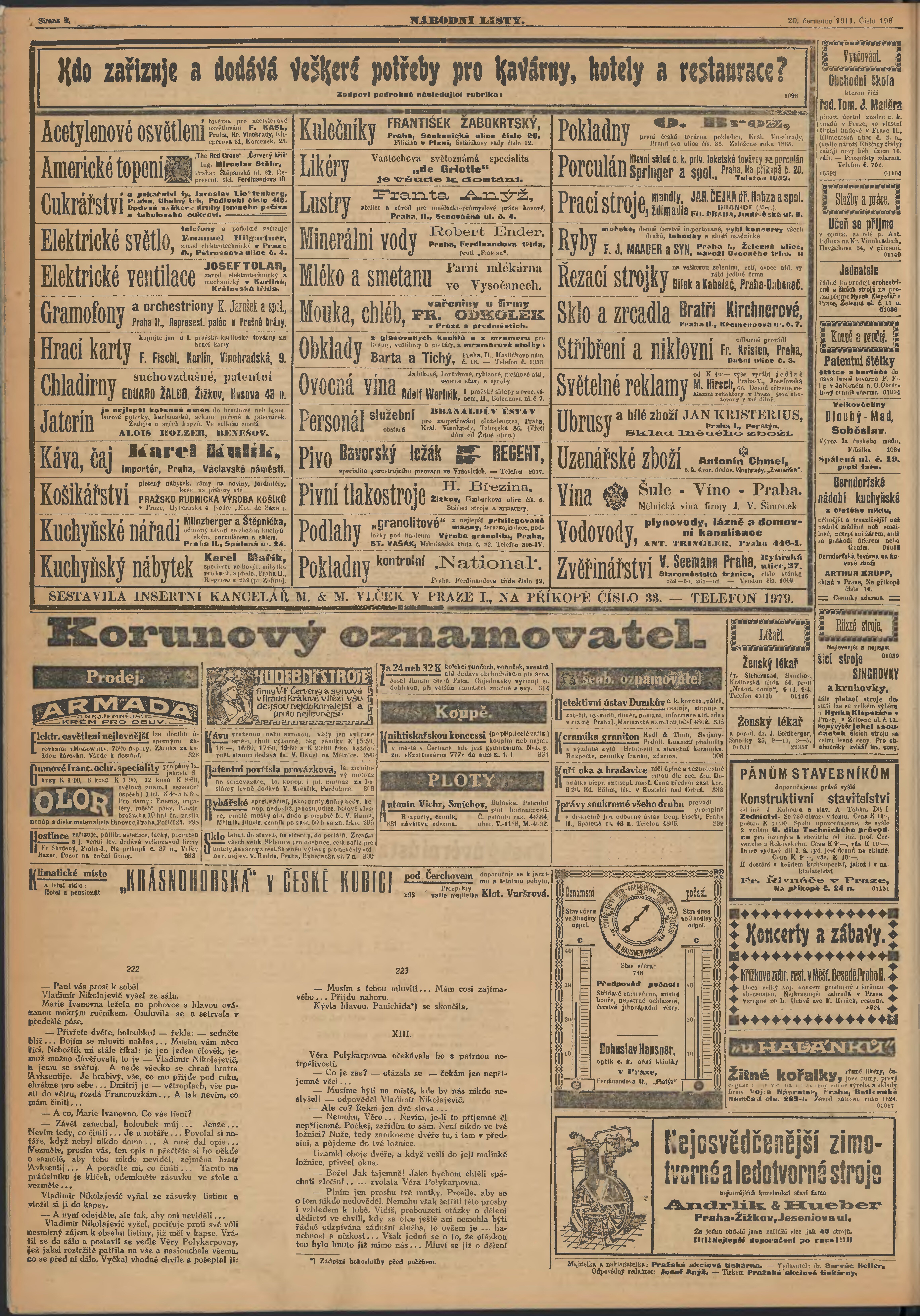 * Datum vydání výtisku: 20.7.1911 Číslo výtisku: 198 Poznámky k výtisku: večerní vydání;