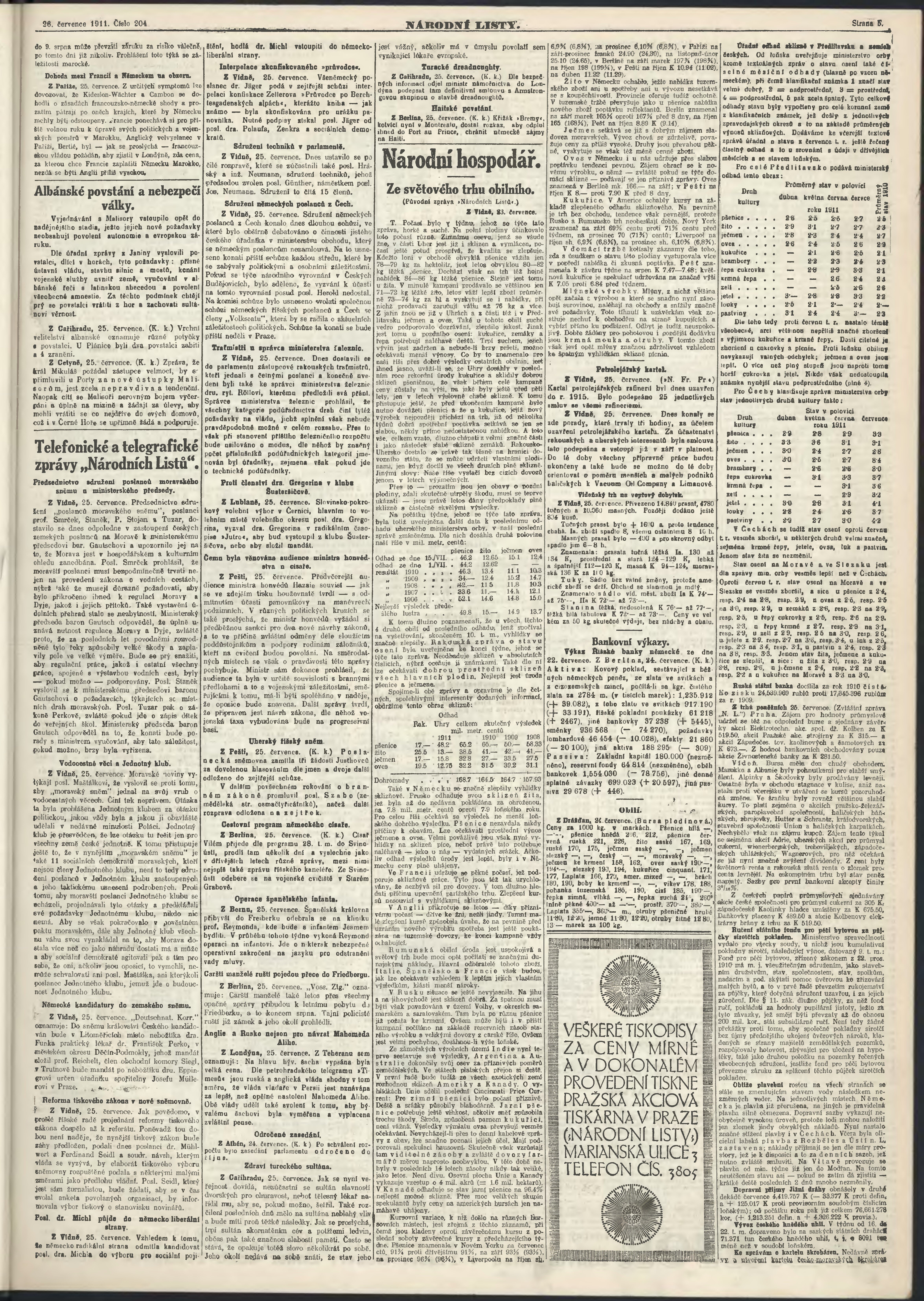* Datum vydání výtisku: 26.7.1911 Číslo výtisku: 204 Poznámky k výtisku: ranní vydání;