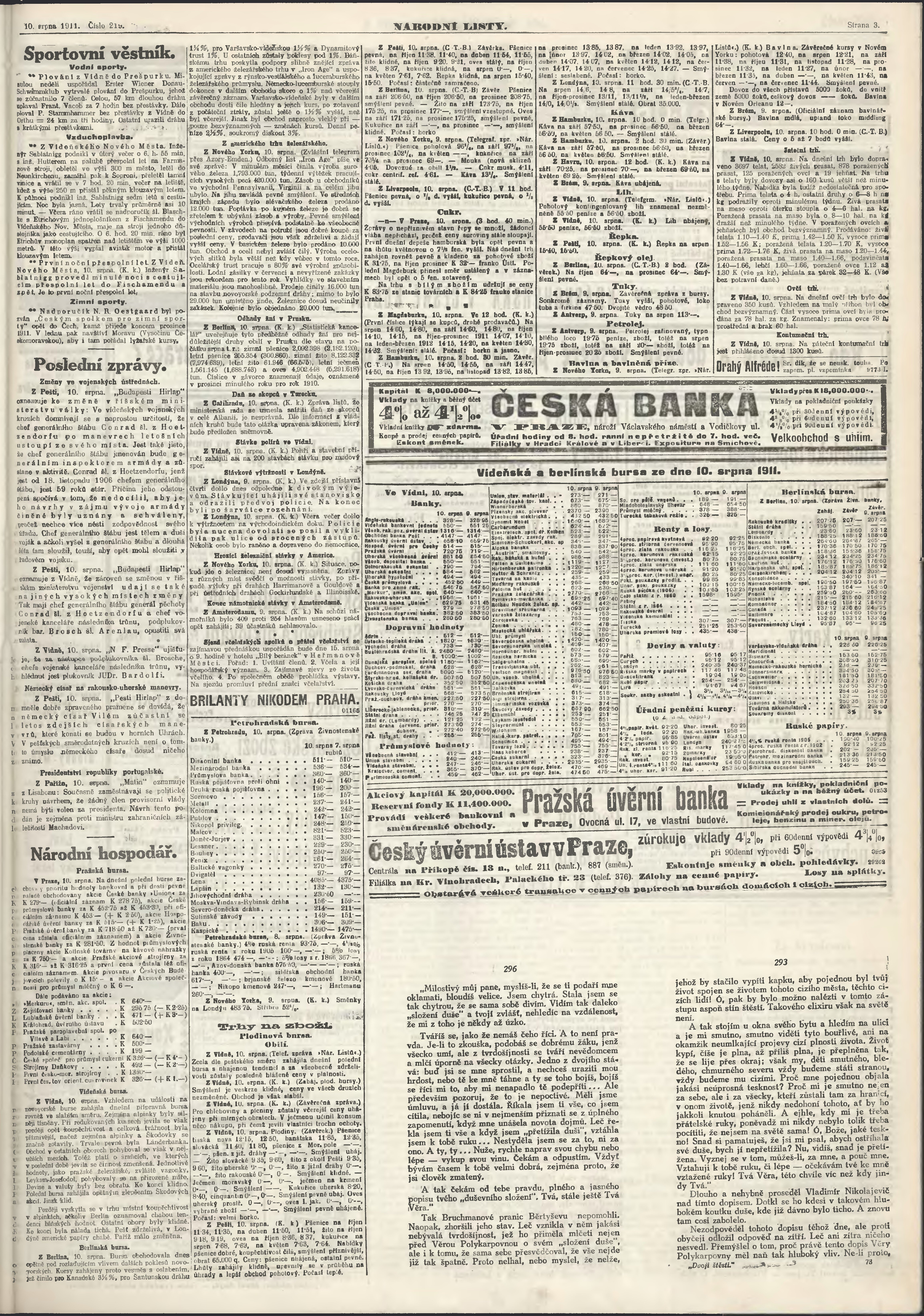 * Datum vydání výtisku: 10.8.1911 Číslo výtisku: 219 Poznámky k výtisku: večerní vydání;