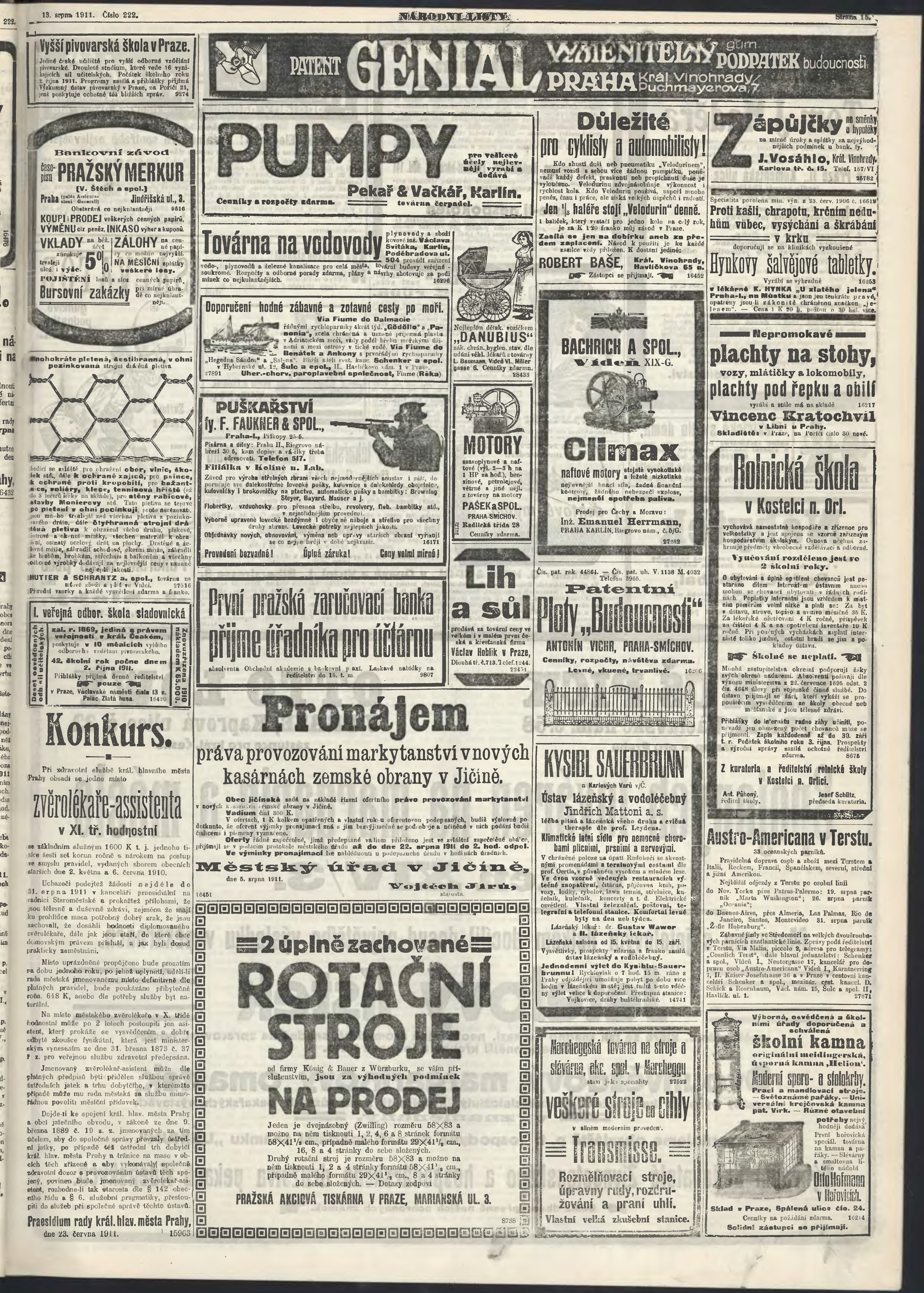 * Datum vydání výtisku: 13.8.1911 Číslo výtisku: 222 Poznámky k výtisku: ranní vydání;
