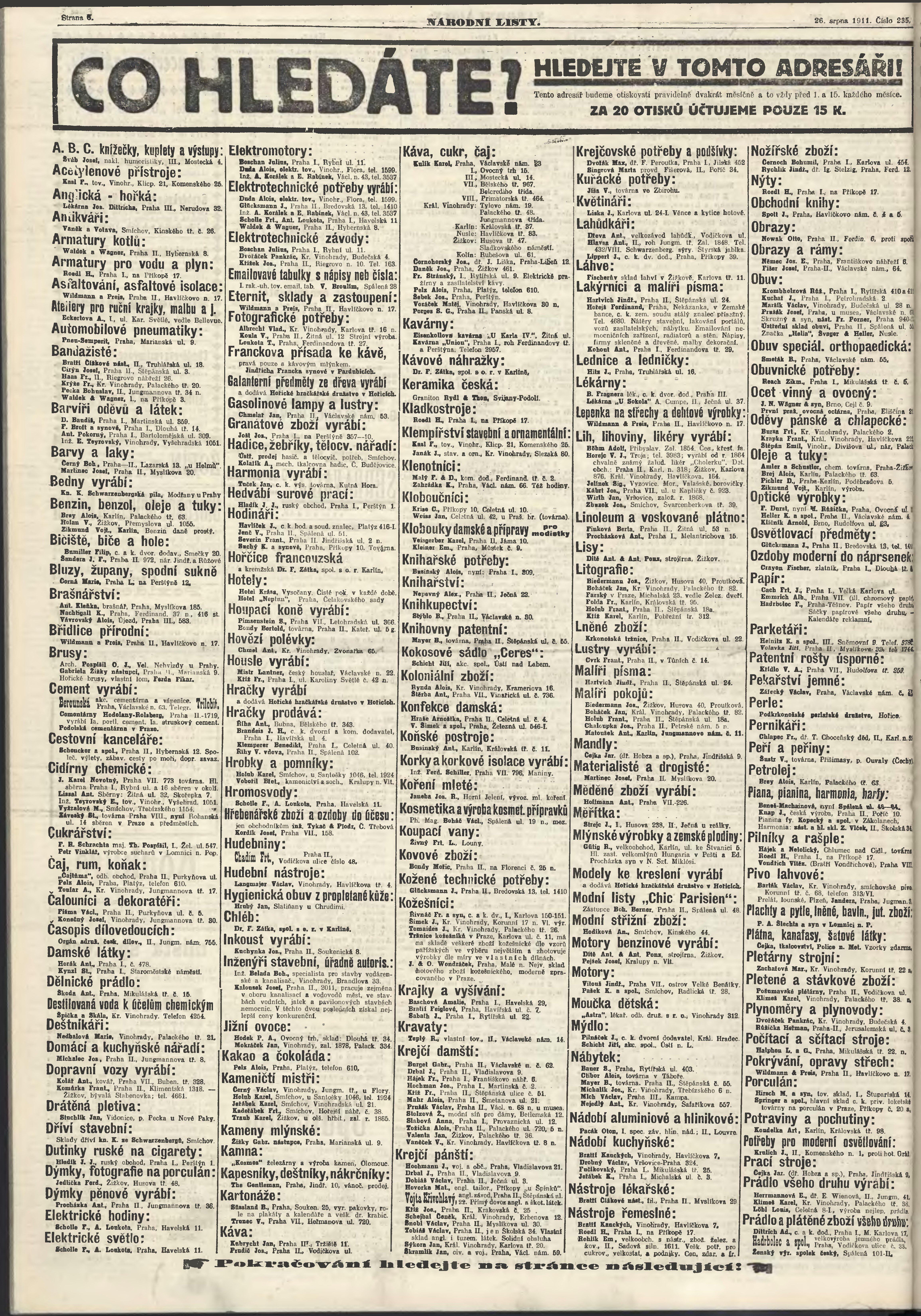 * Datum vydání výtisku: 26.8.1911 Číslo výtisku: 235 Poznámky k výtisku: ranní vydání;