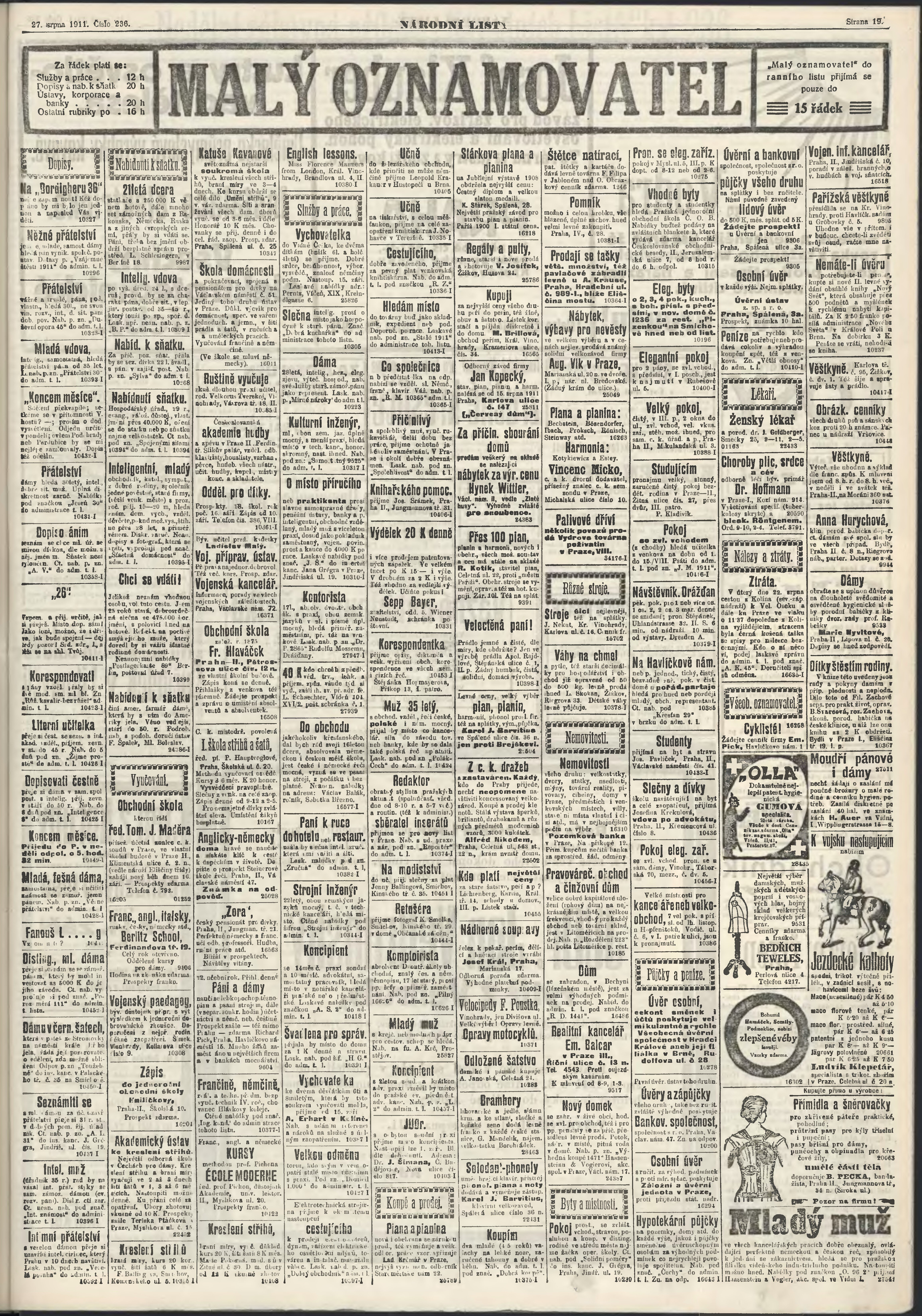 * Datum vydání výtisku: 27.8.1911 Číslo výtisku: 236 Poznámky k výtisku: ranní vydání;
