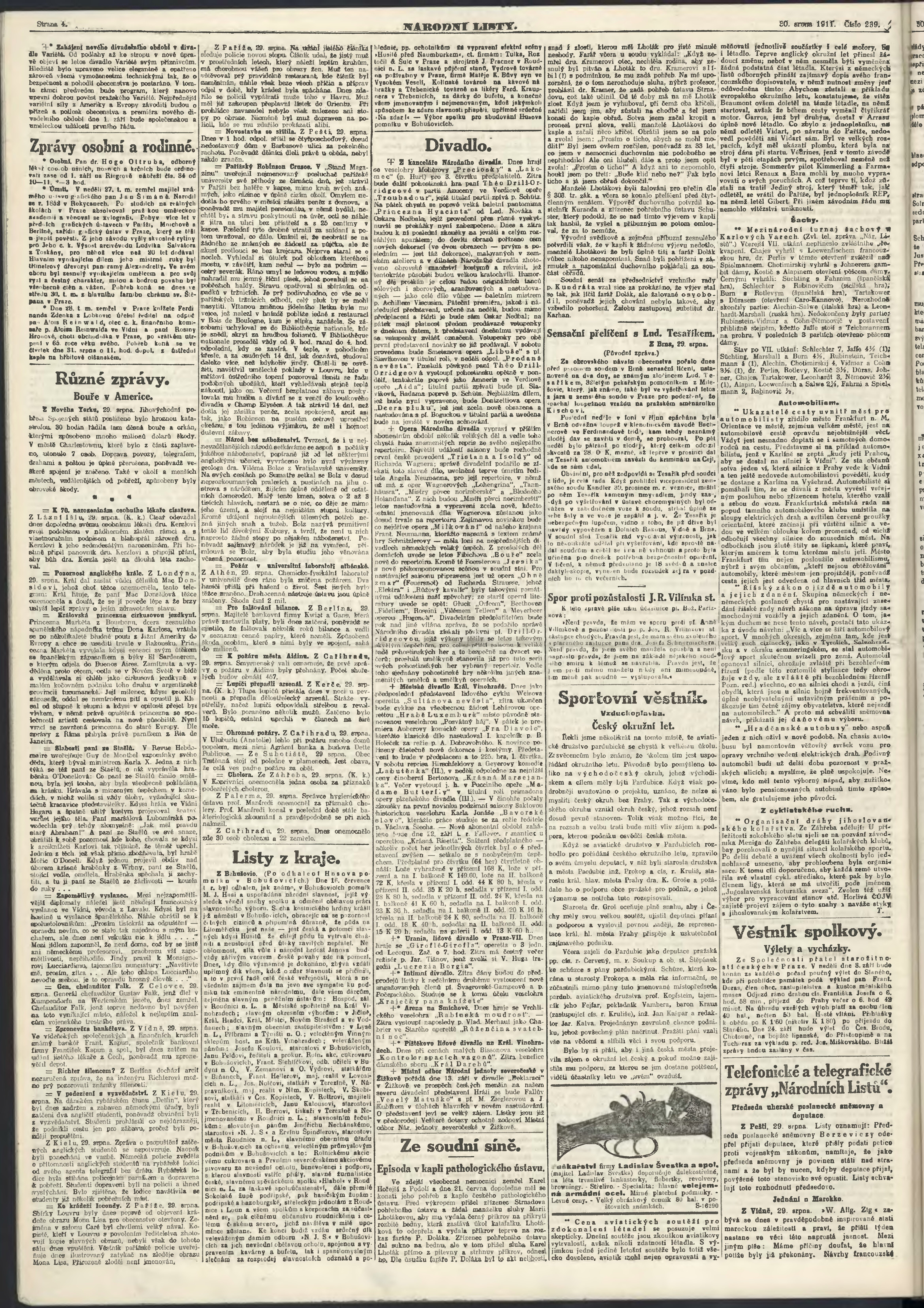 * Datum vydání výtisku: 30.8.1911 Číslo výtisku: 239 Poznámky k výtisku: ranní vydání;