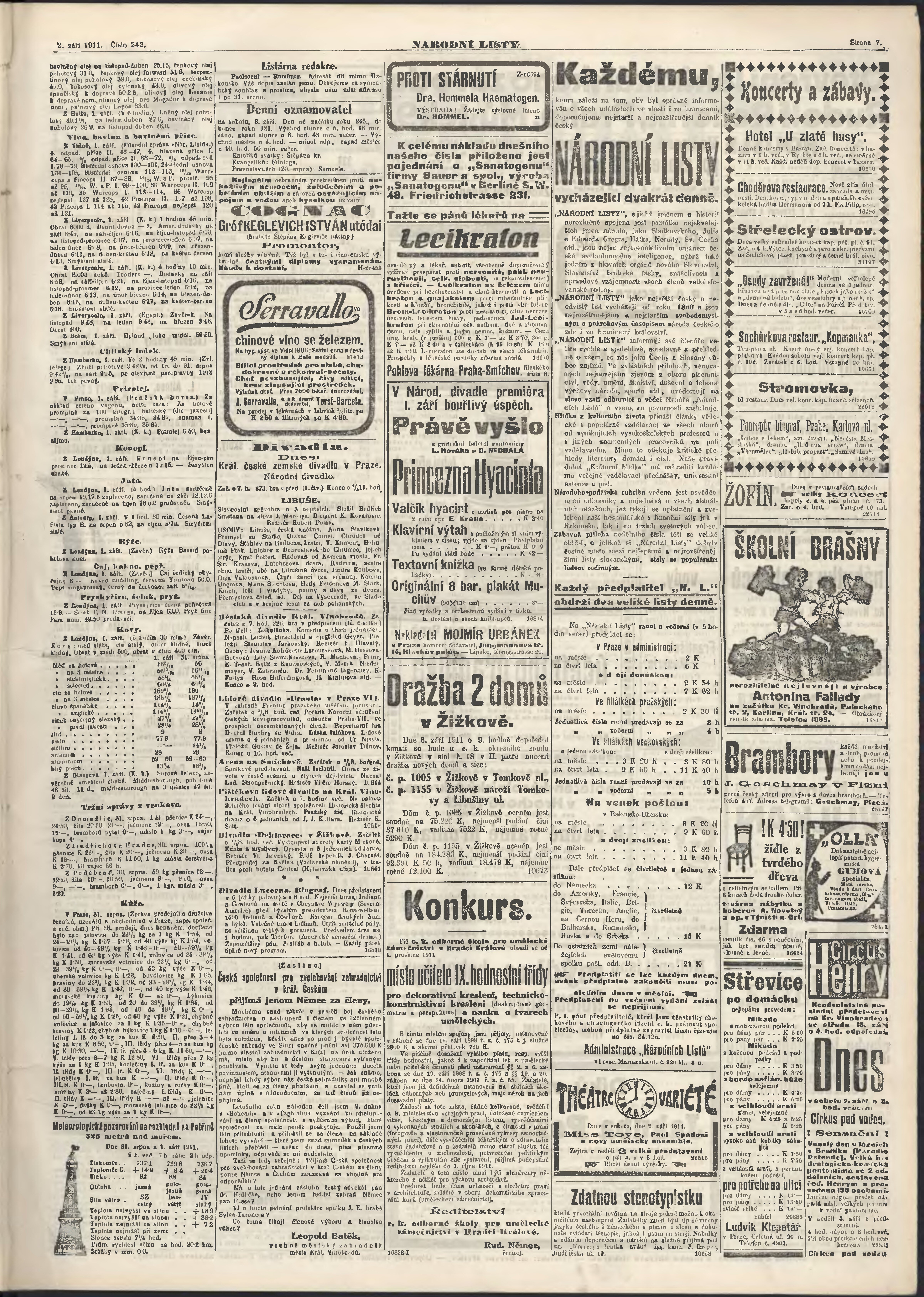 * Datum vydání výtisku: 2.9.1911 Číslo výtisku: 242 Poznámky k výtisku: ranní vydání;