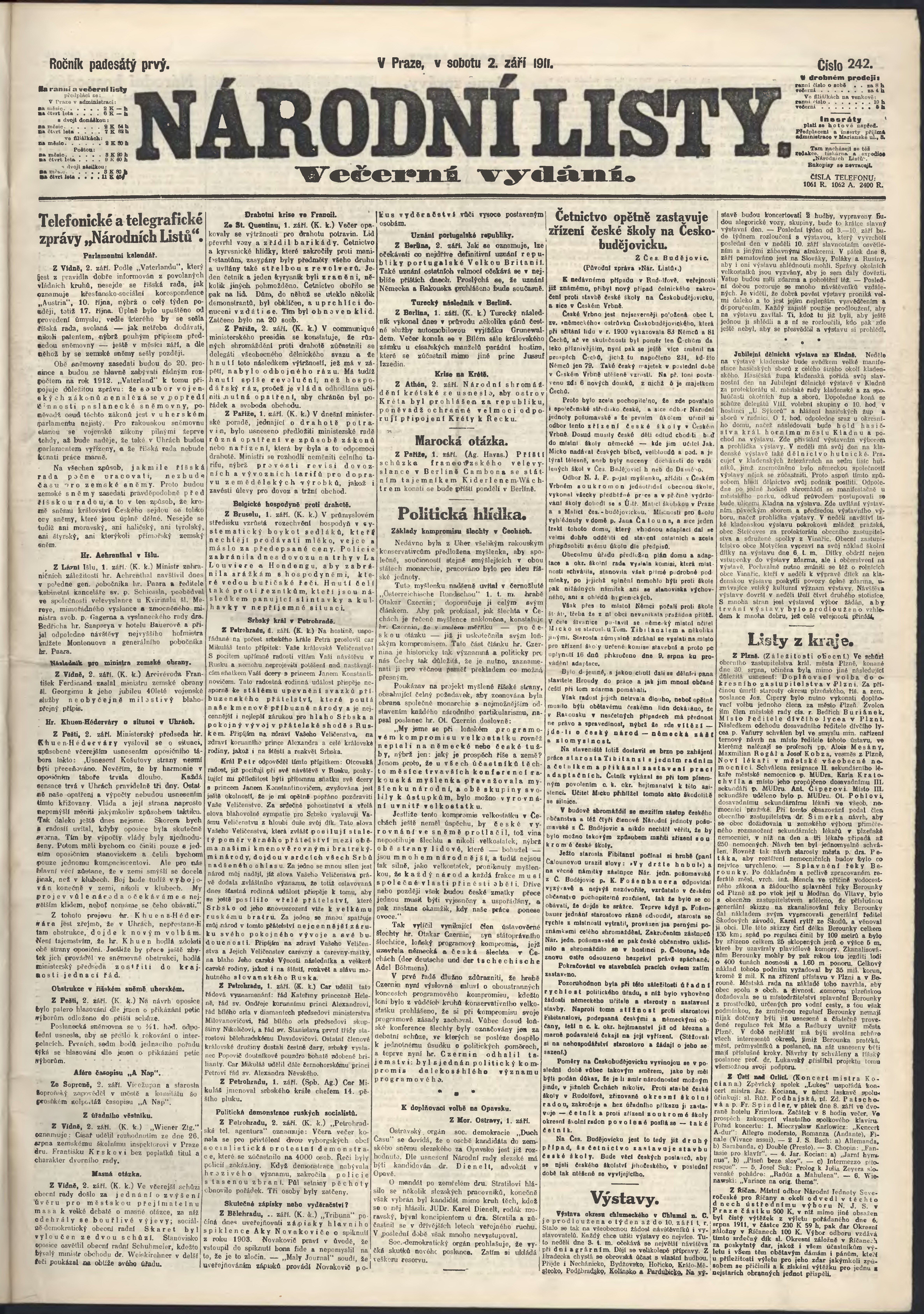 * Datum vydání výtisku: 2.9.1911 Číslo výtisku: 242 Poznámky k výtisku: večerní vydání;