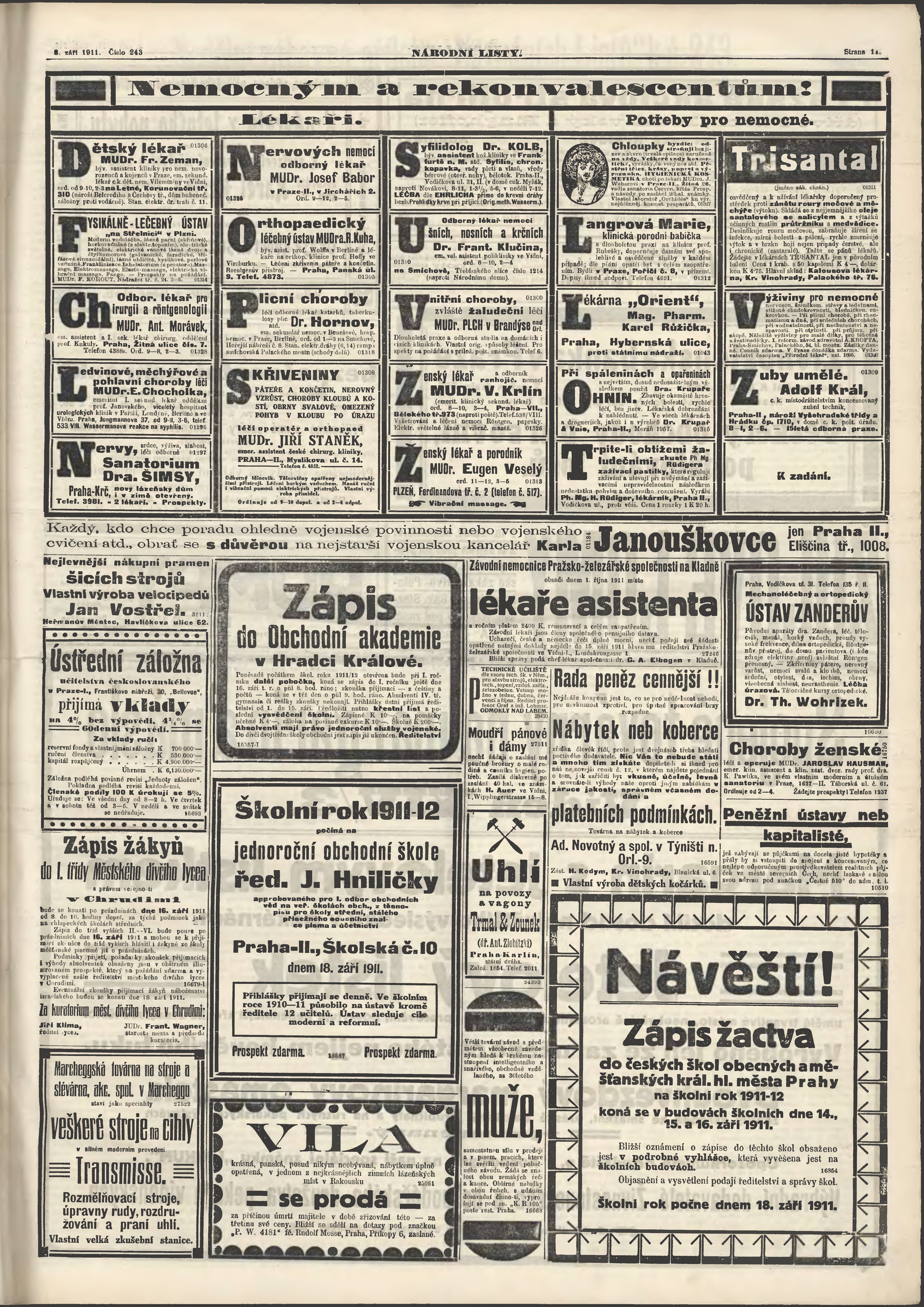 * Datum vydání výtisku: 3.9.1911 Číslo výtisku: 243 Poznámky k výtisku: ranní vydání;