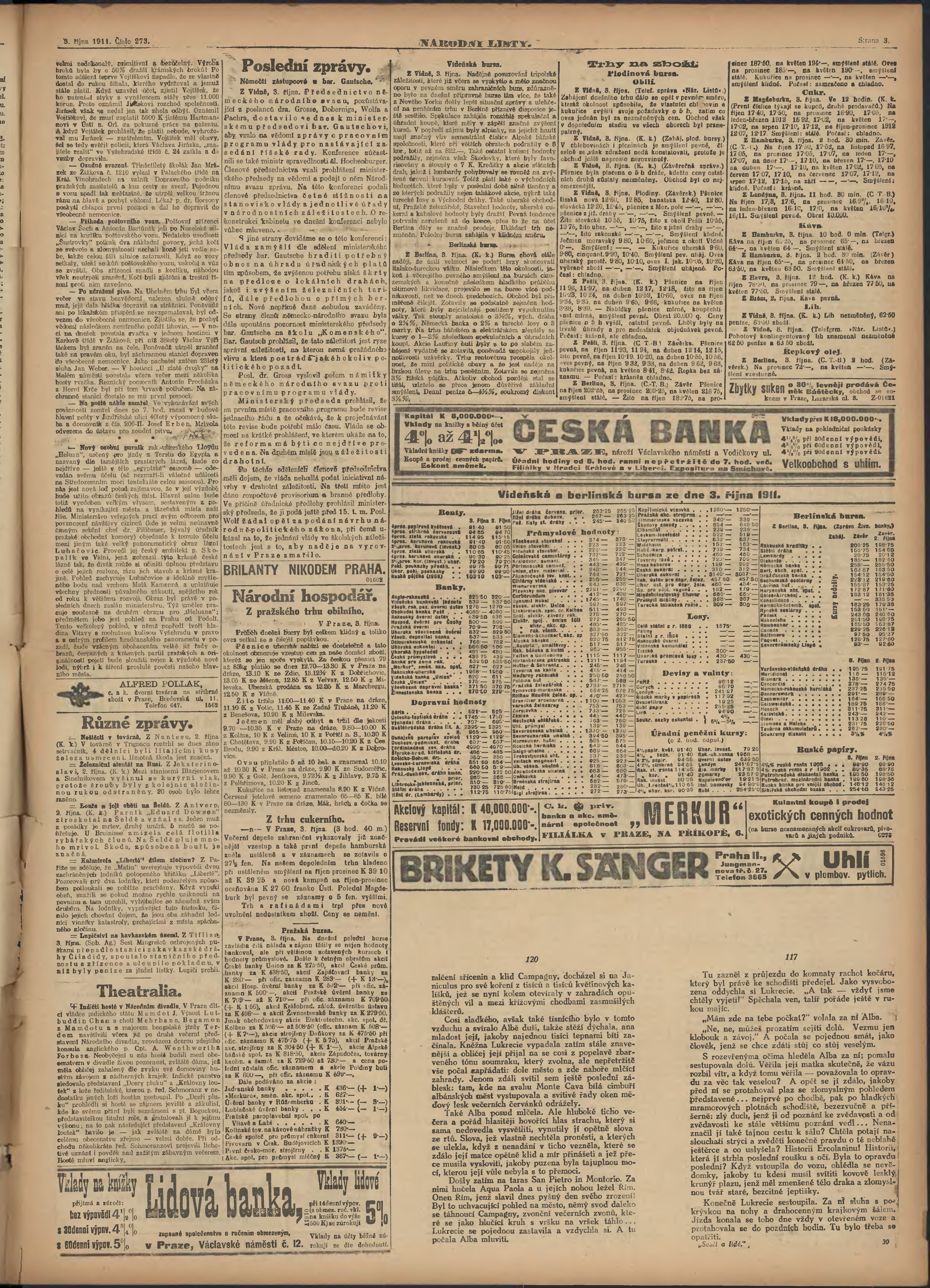 večerní vydání; nekonzistence v číslování stran;