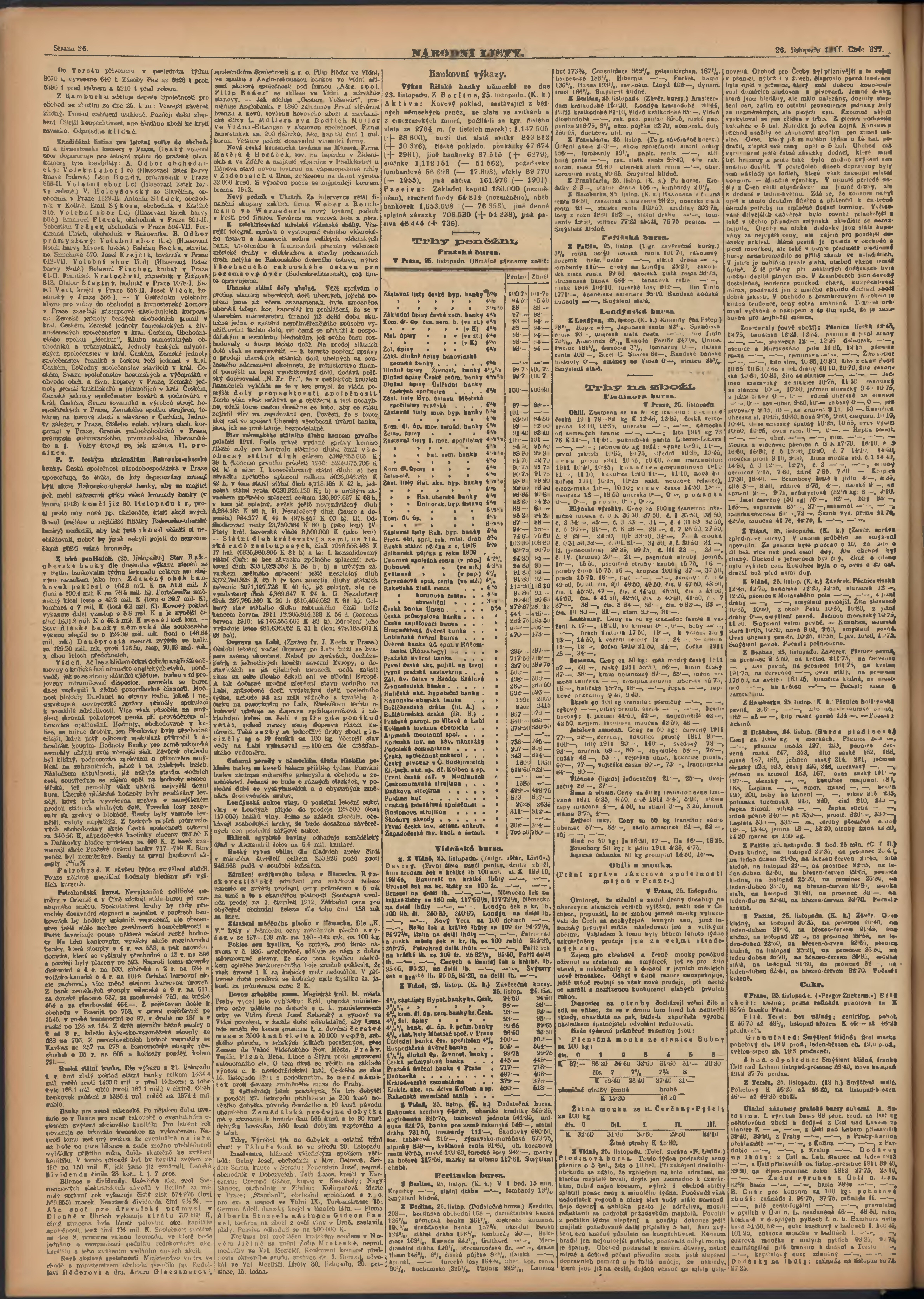 * Datum vydání výtisku: 26.11.1911 Číslo výtisku: 327 Poznámky k výtisku: ranní vydání;