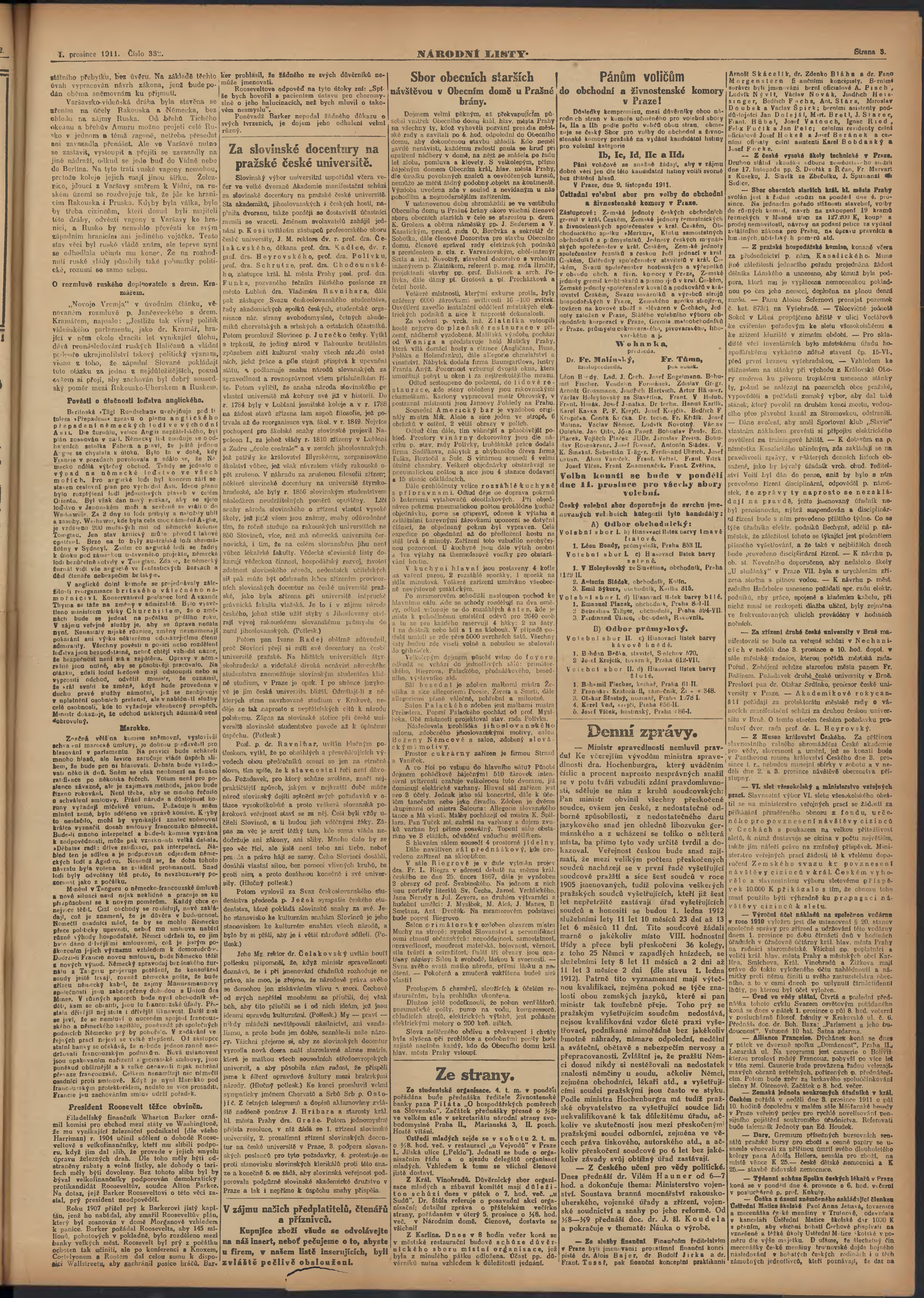 * Datum vydání výtisku: 1.12.1911 Číslo výtisku: 332 Poznámky k výtisku: ranní vydání;