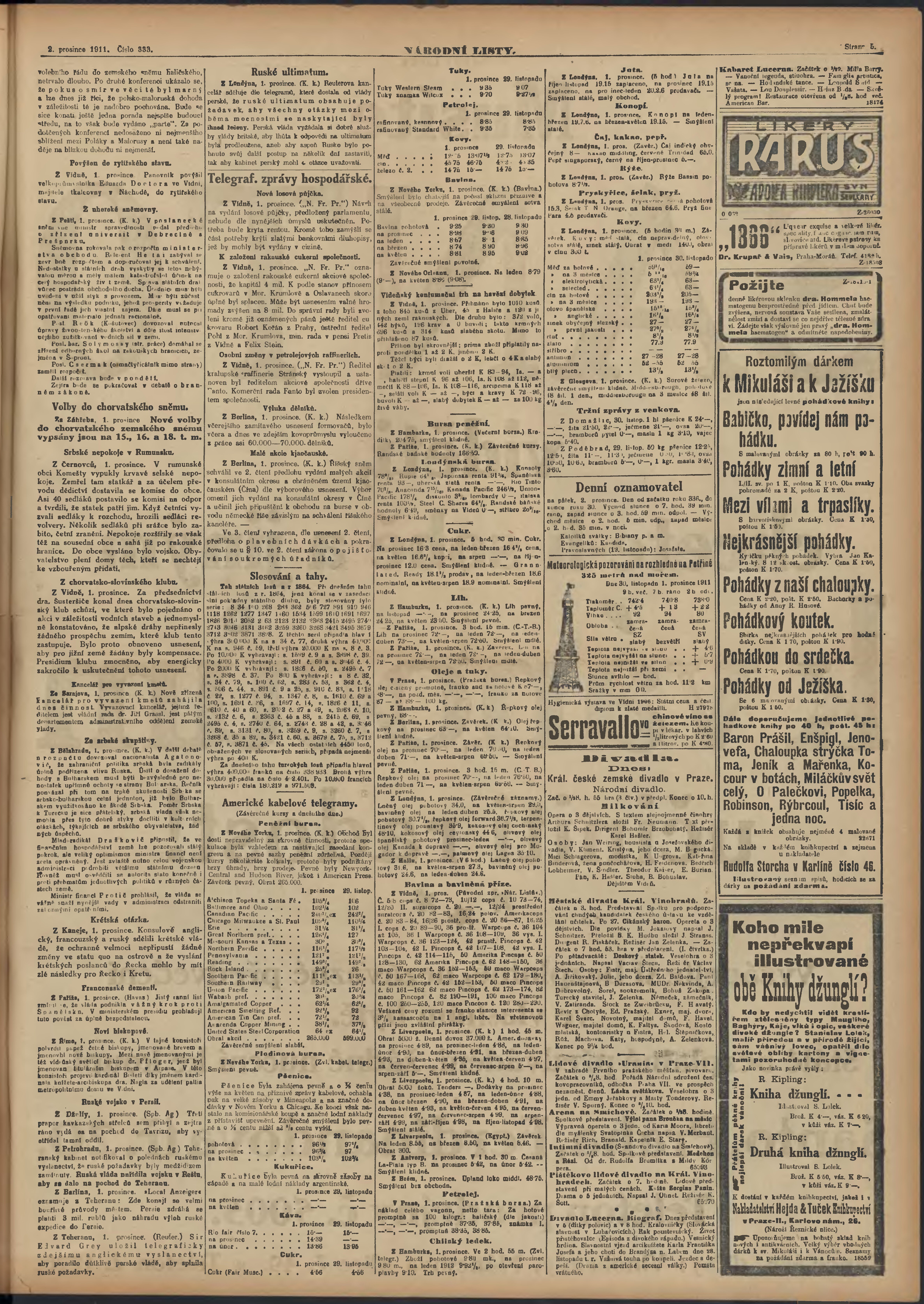 * Datum vydání výtisku: 2.12.1911 Číslo výtisku: 333 Poznámky k výtisku: ranní vydání;