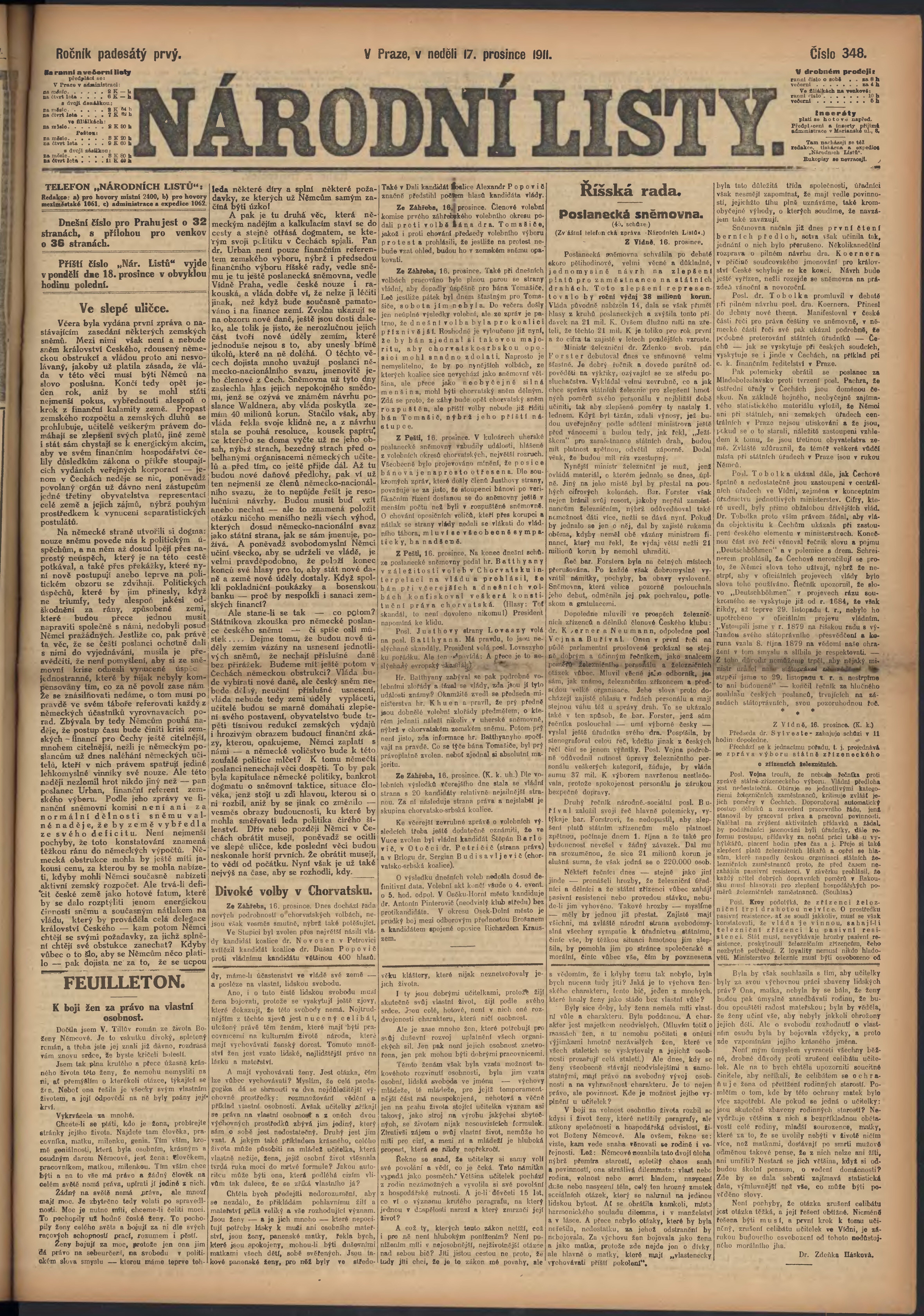 * Datum vydání výtisku: 17.12.1911 Číslo výtisku: 348 Poznámky k výtisku: ranní vydání;