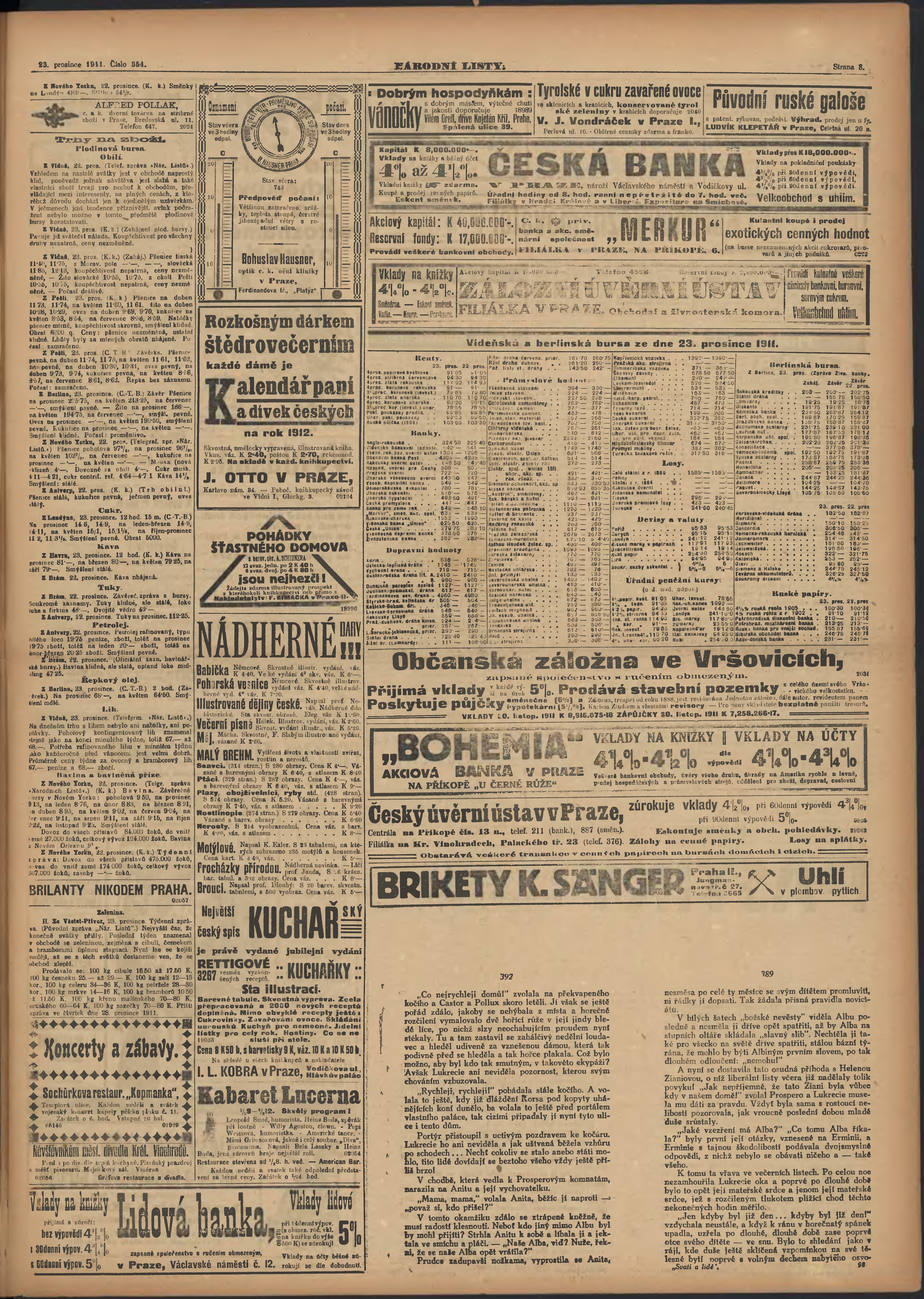 * Datum vydání výtisku: 23.12.1911 Číslo výtisku: 354 Poznámky k výtisku: večerní vydání;