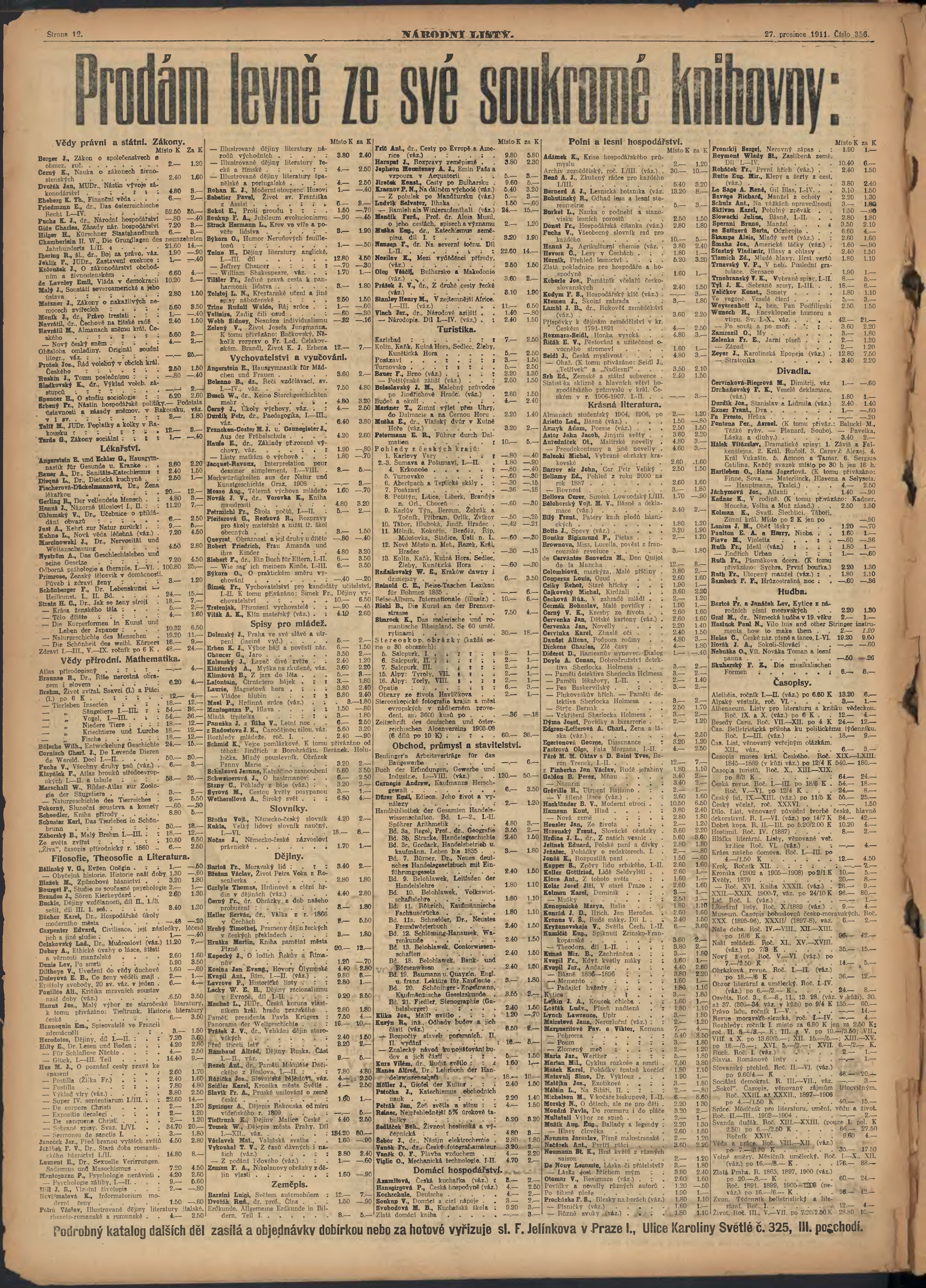 * Datum vydání výtisku: 27.12.1911 Číslo výtisku: 356 Poznámky k výtisku: ranní vydání; nekonzistence číslování stran;