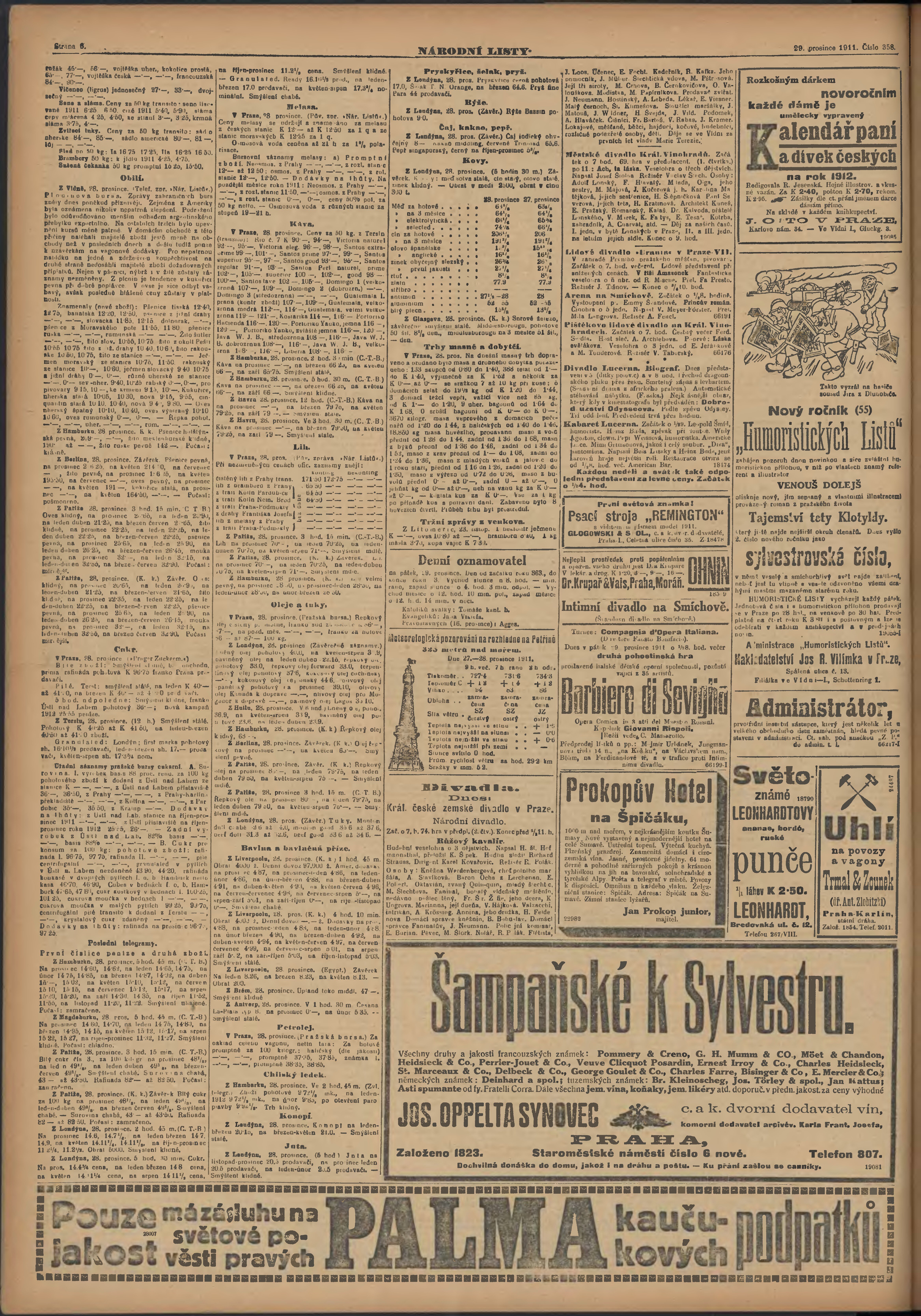 * Datum vydání výtisku: 29.12.1911 Číslo výtisku: 358 Poznámky k výtisku: ranní vydání;