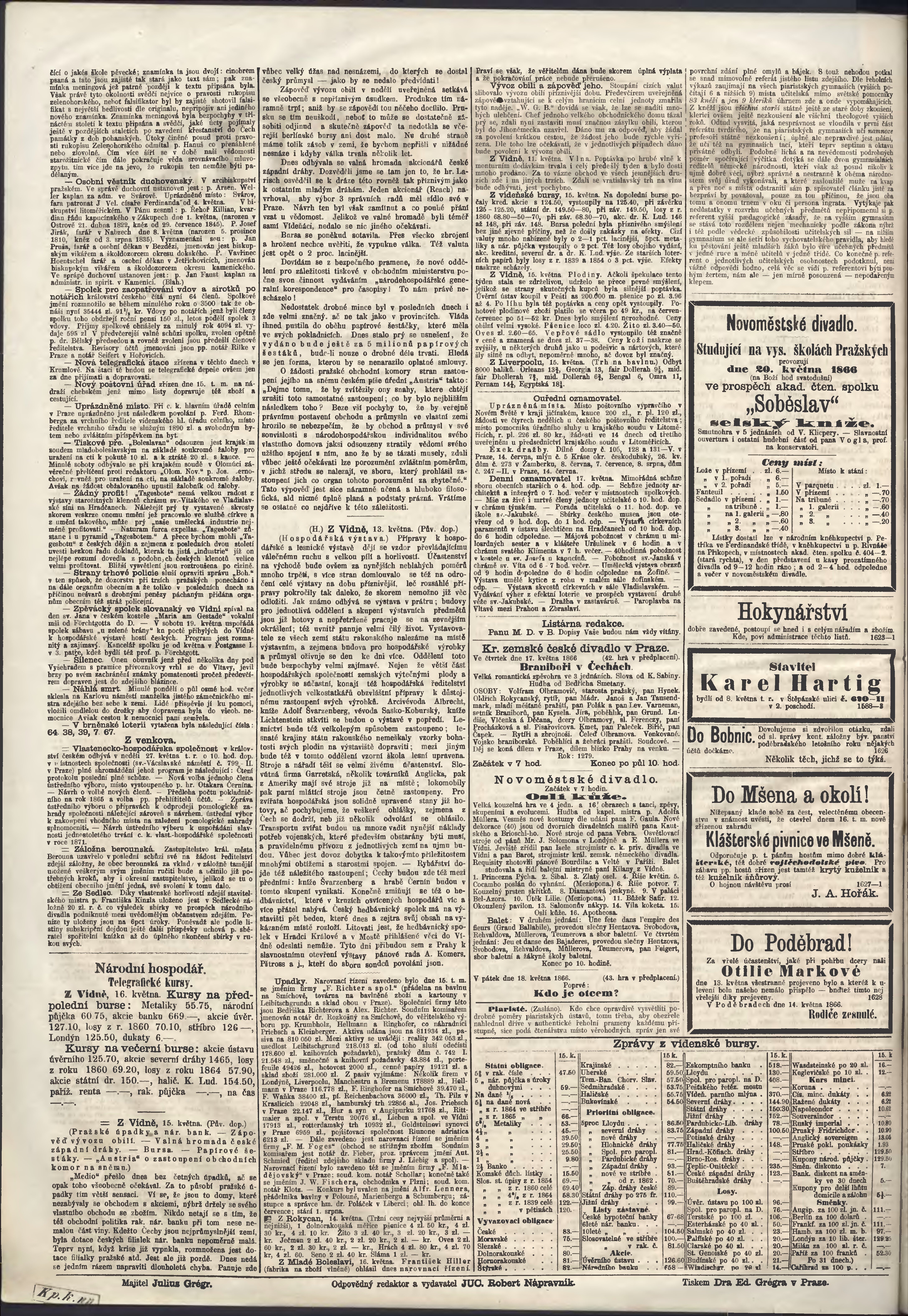 * Datum vydání výtisku: 17.5.1866 Číslo výtisku: 135