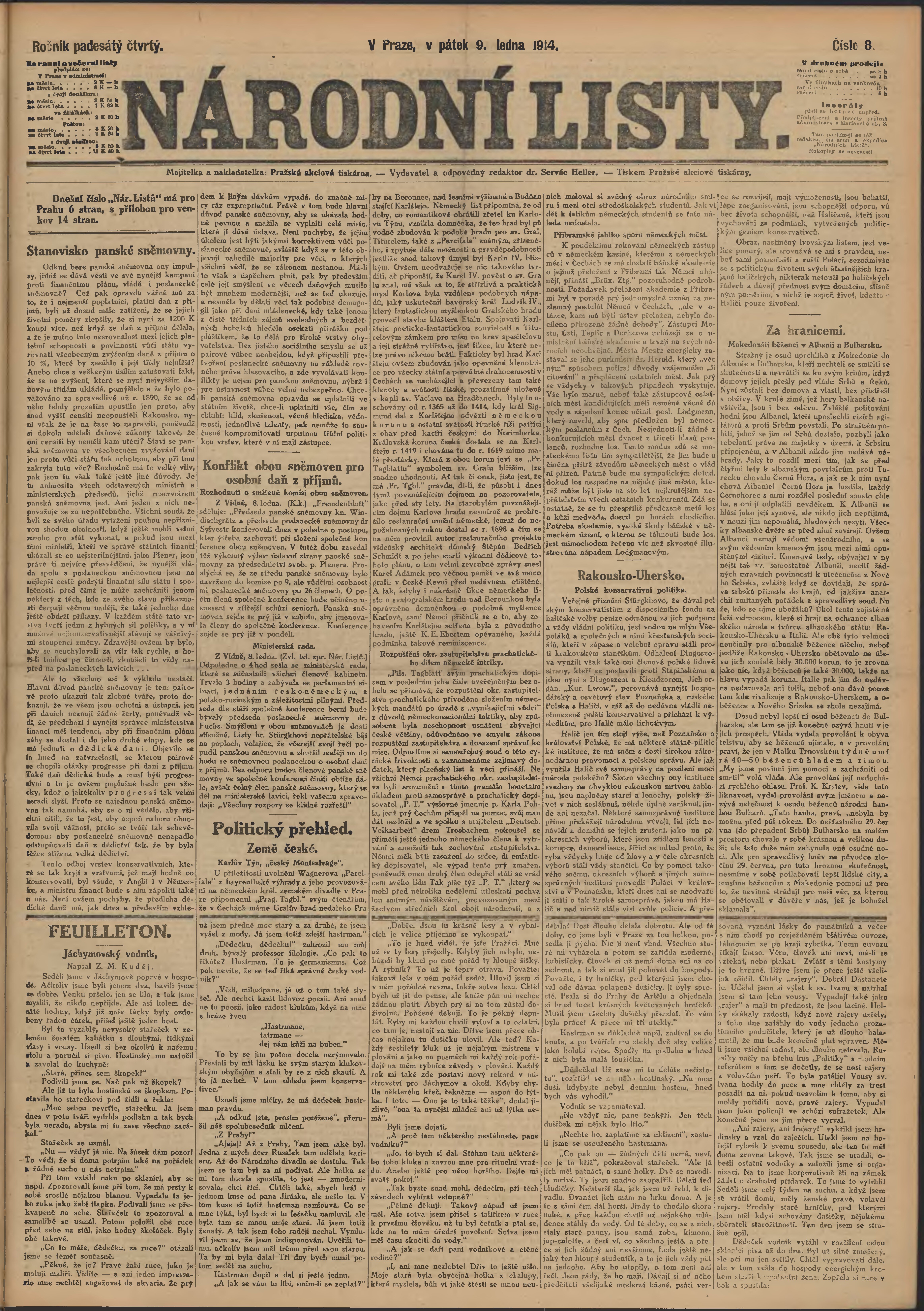 * Datum vydání výtisku: 9.1.1914 Číslo výtisku: 8 Poznámky k výtisku: ranní vydání;
