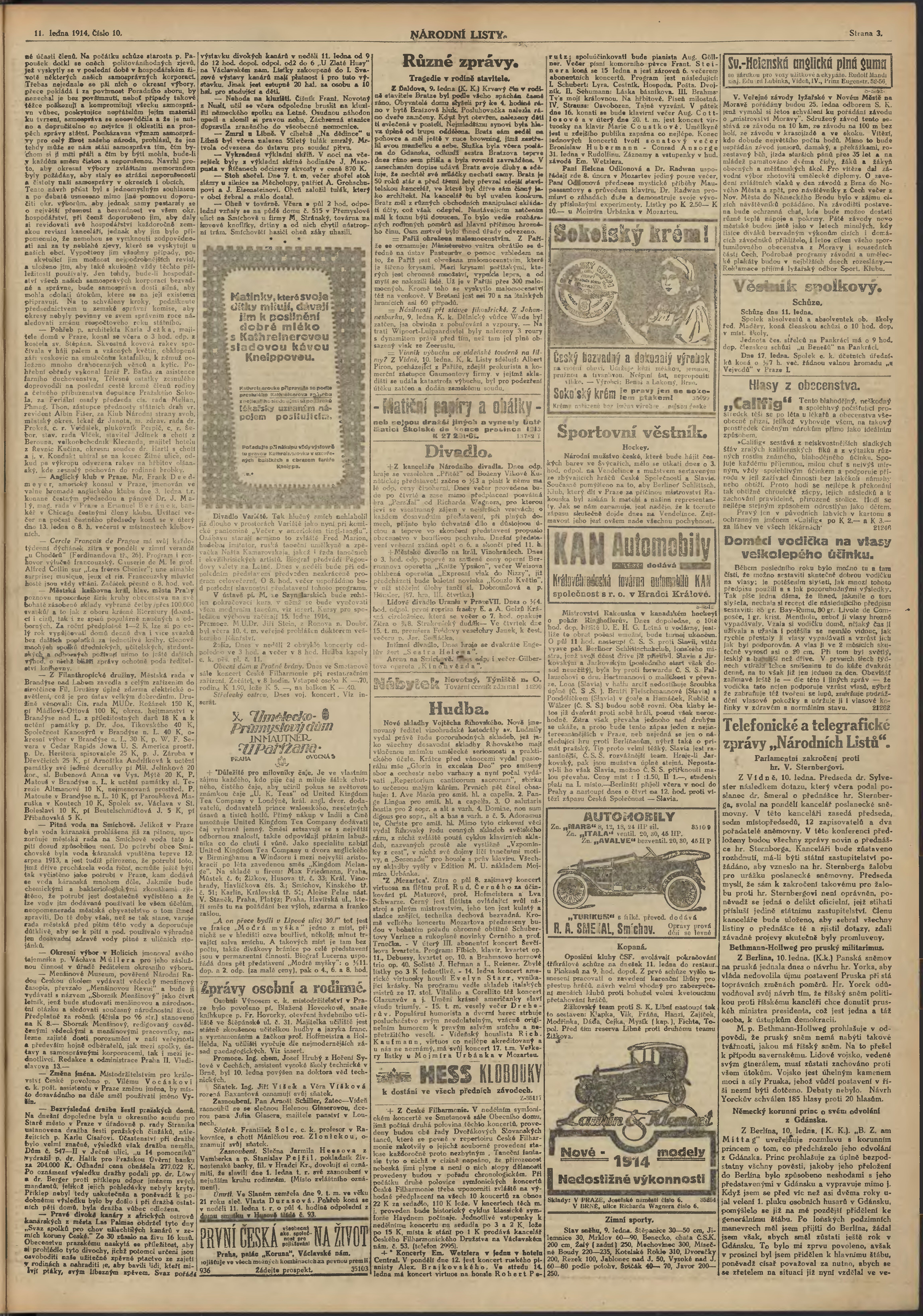 * Datum vydání výtisku: 11.1.1914 Číslo výtisku: 10 Poznámky k výtisku: ranní vydání;
