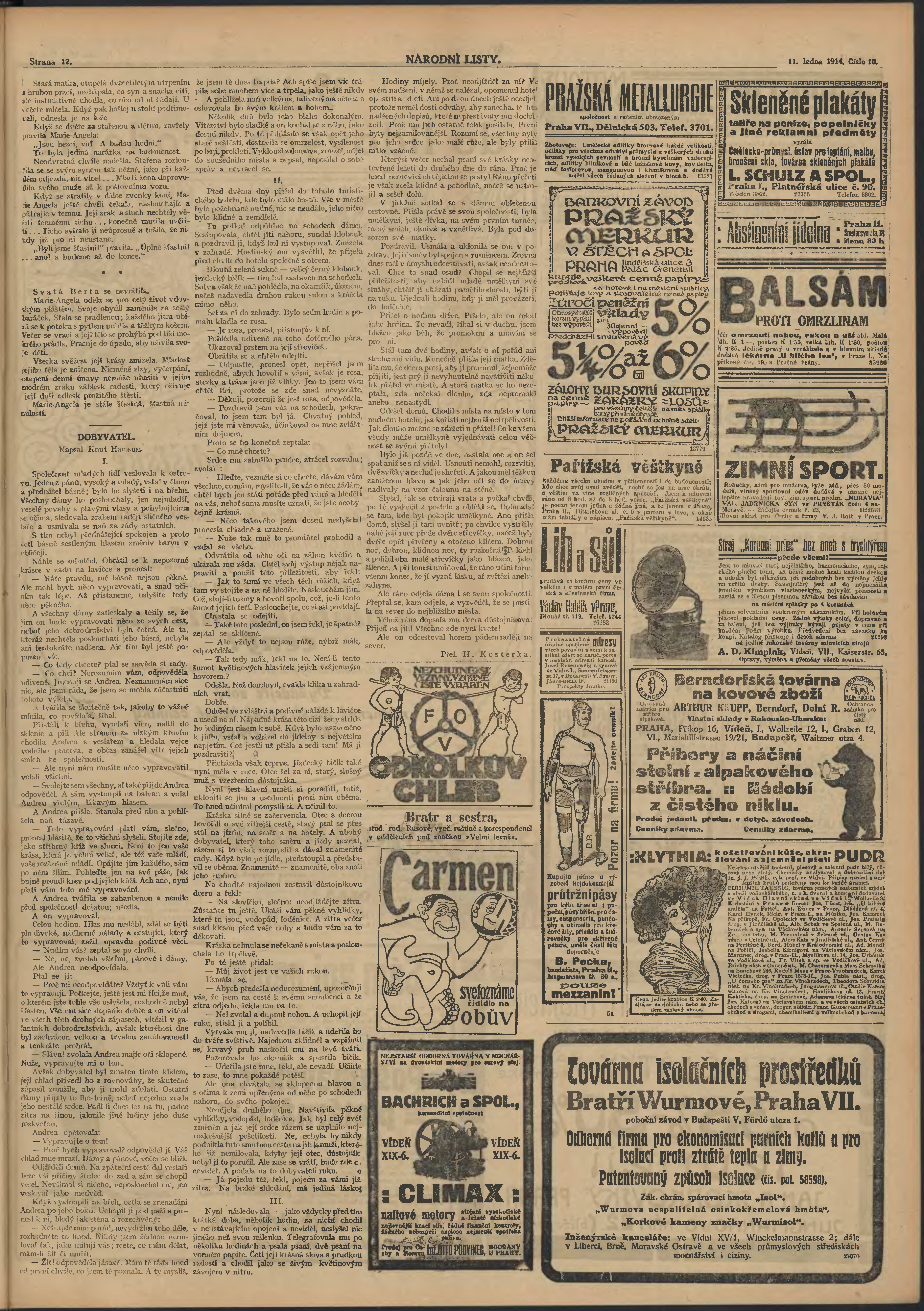 * Datum vydání výtisku: 11.1.1914 Číslo výtisku: 10 Poznámky k výtisku: ranní vydání;
