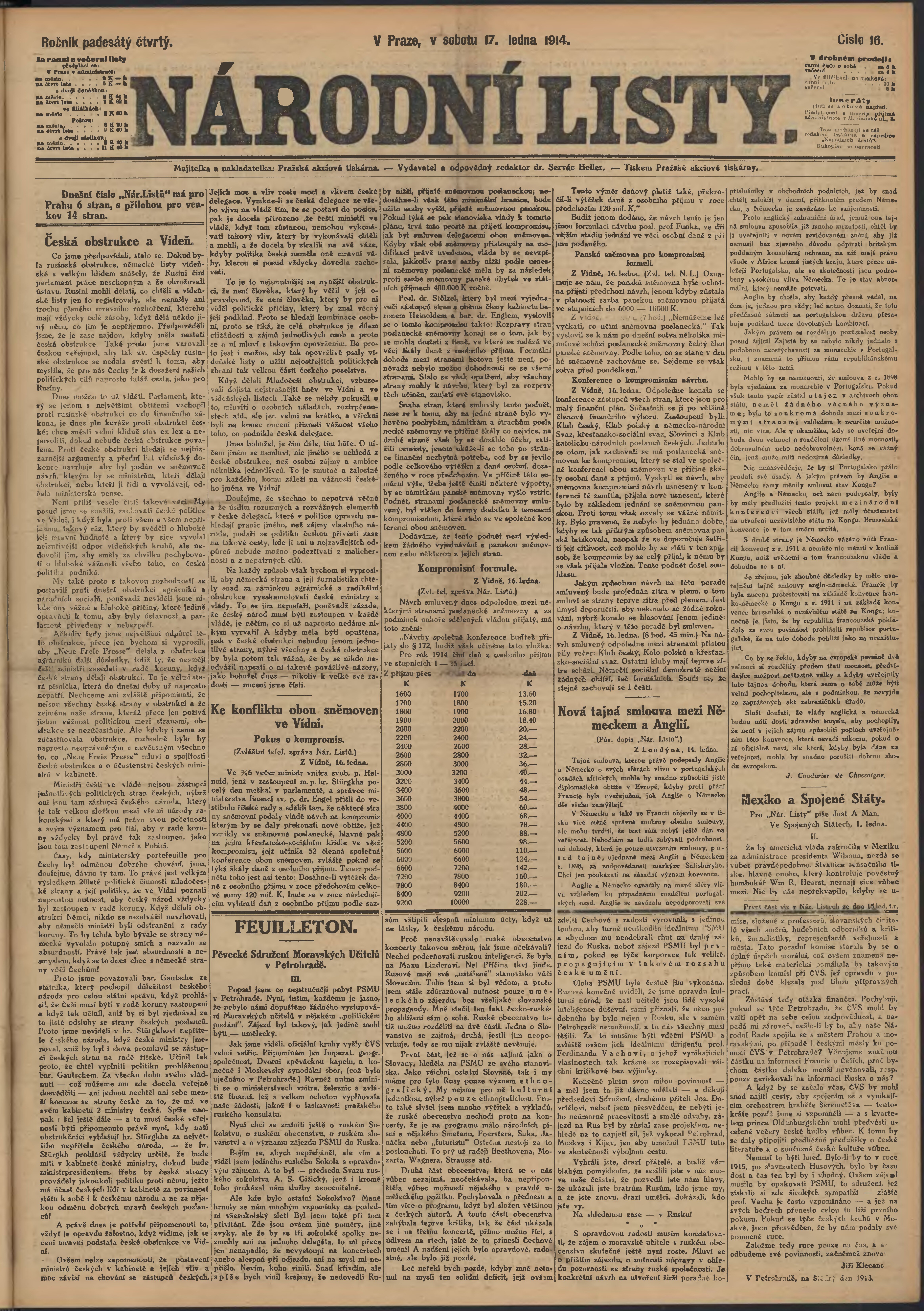 * Datum vydání výtisku: 17.1.1914 Číslo výtisku: 16 Poznámky k výtisku: ranní vydání;