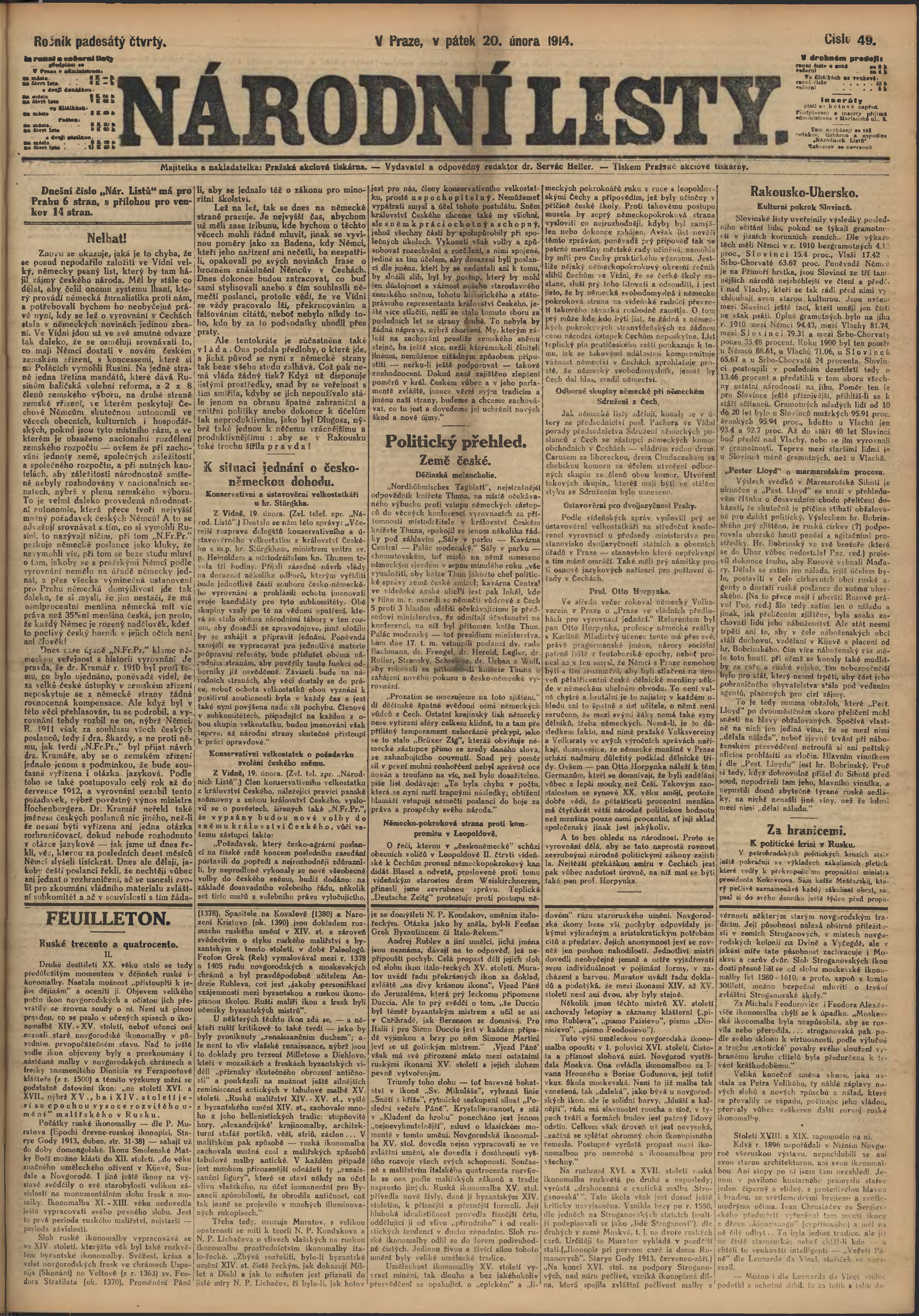 * Datum vydání výtisku: 20.2.1914 Číslo výtisku: 49 Poznámky k výtisku: ranní vydání;